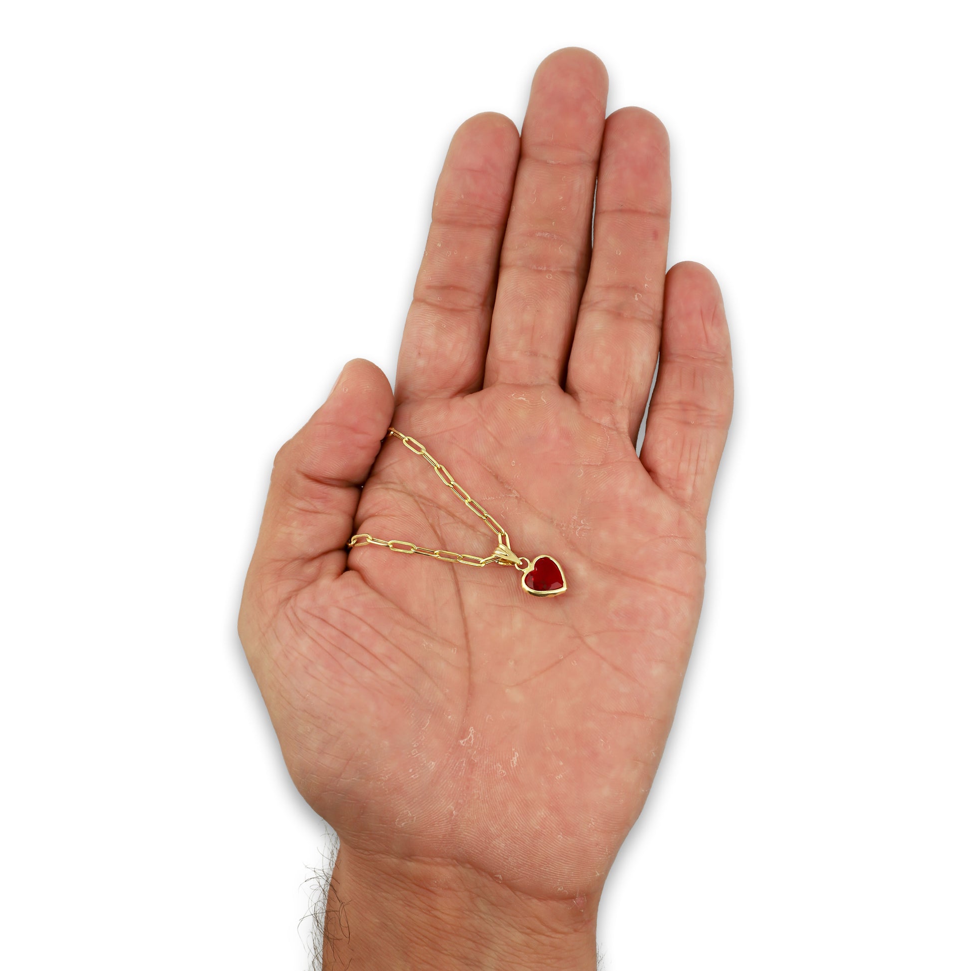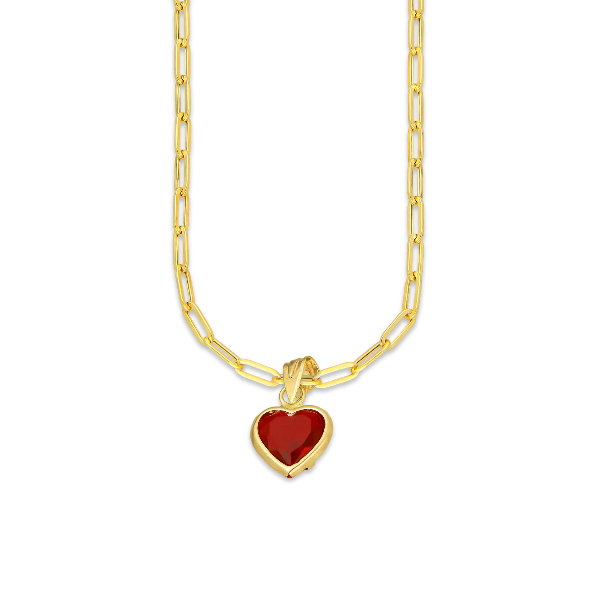 MR10DP111 Cadena Oro Sólido 10K + Dije Oro Sólido 10K EM Corazón con Bisel Liso Rojo 9 mm x 1.6 cm