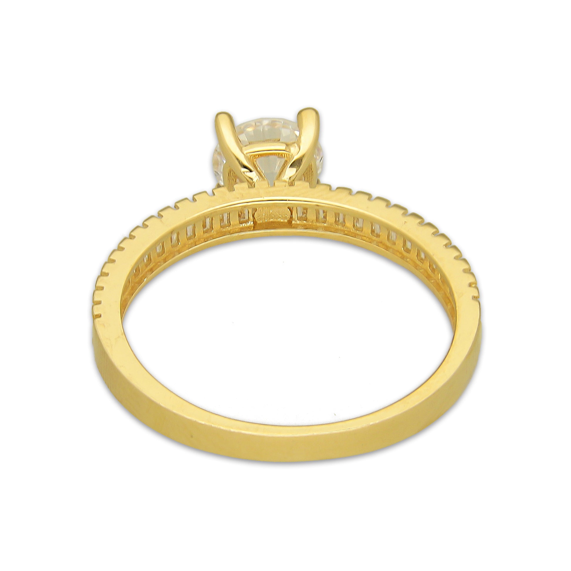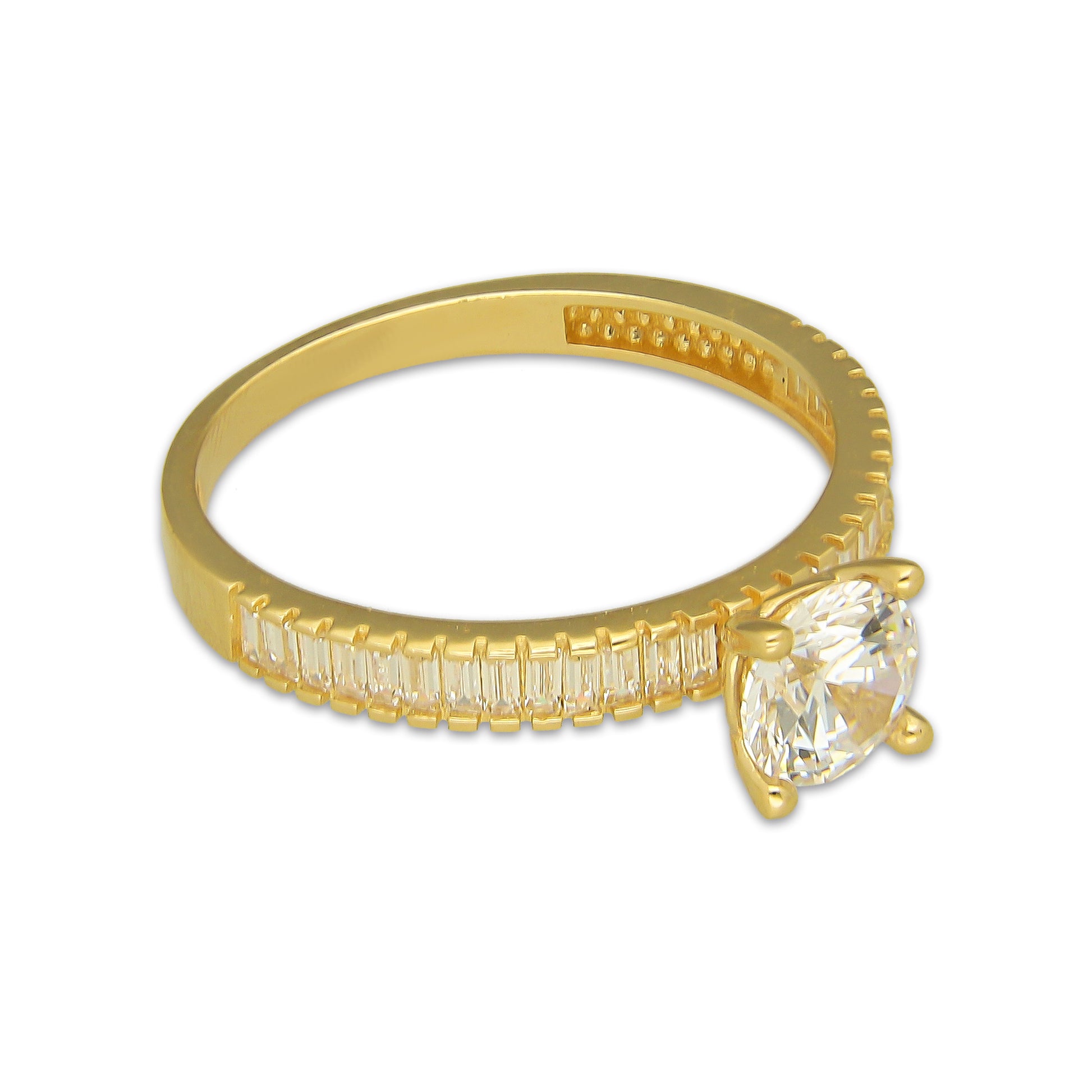 MR14AD058 Anillo Dama Oro Sólido 14K Modelo Solitario Línea Baguettes 6 mm Zirconia Principal