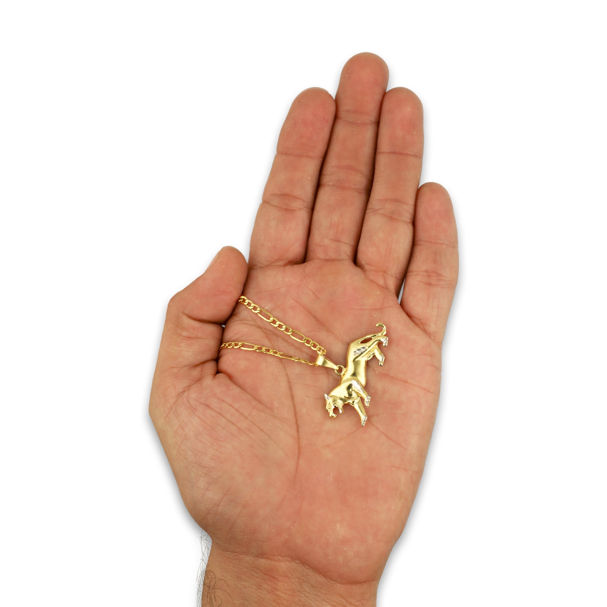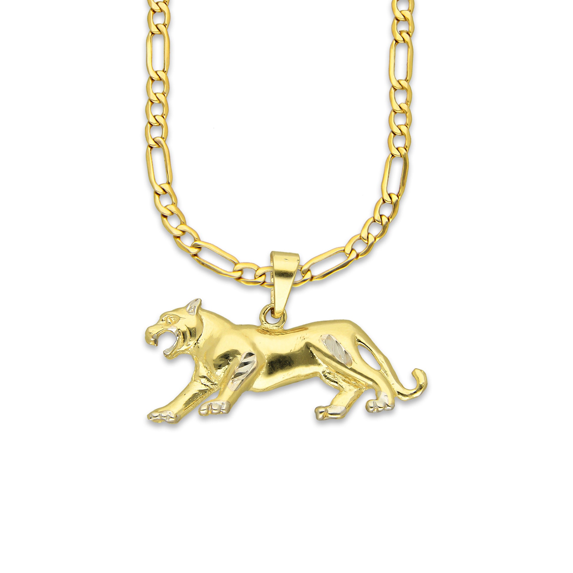 MR14DP005 Cadena Oro Sólido 10K + Dije Oro Sólido 14K Pantera Cuerpo Completo Diamantada 3.4 cm x 2 cm