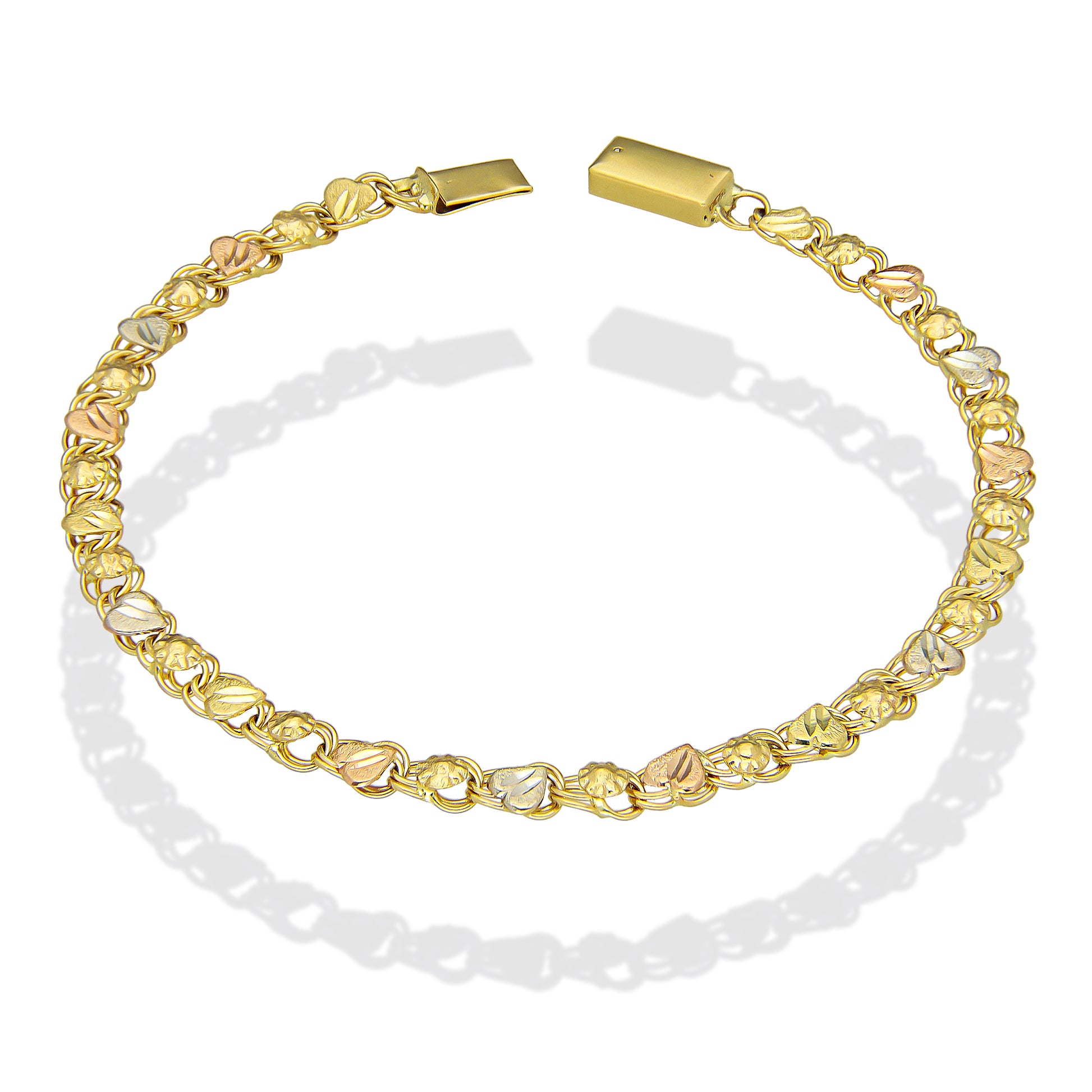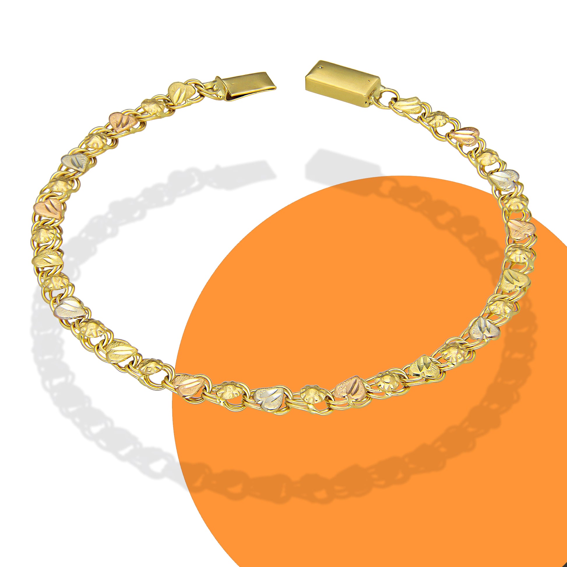MR14PD130 Pulsera Dama Oro Sólido 14K Modelo Tejido Chino con Corazones 4 mm x 19 cm