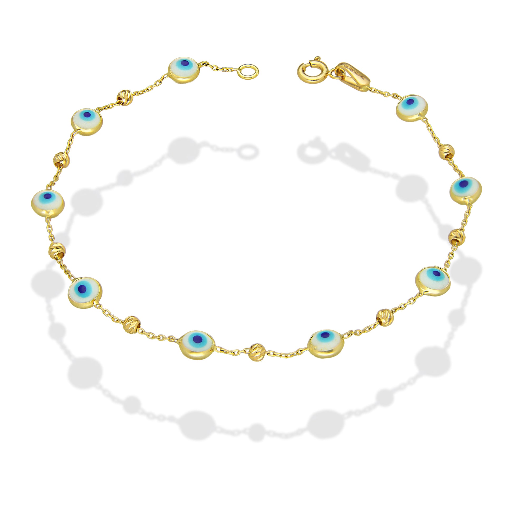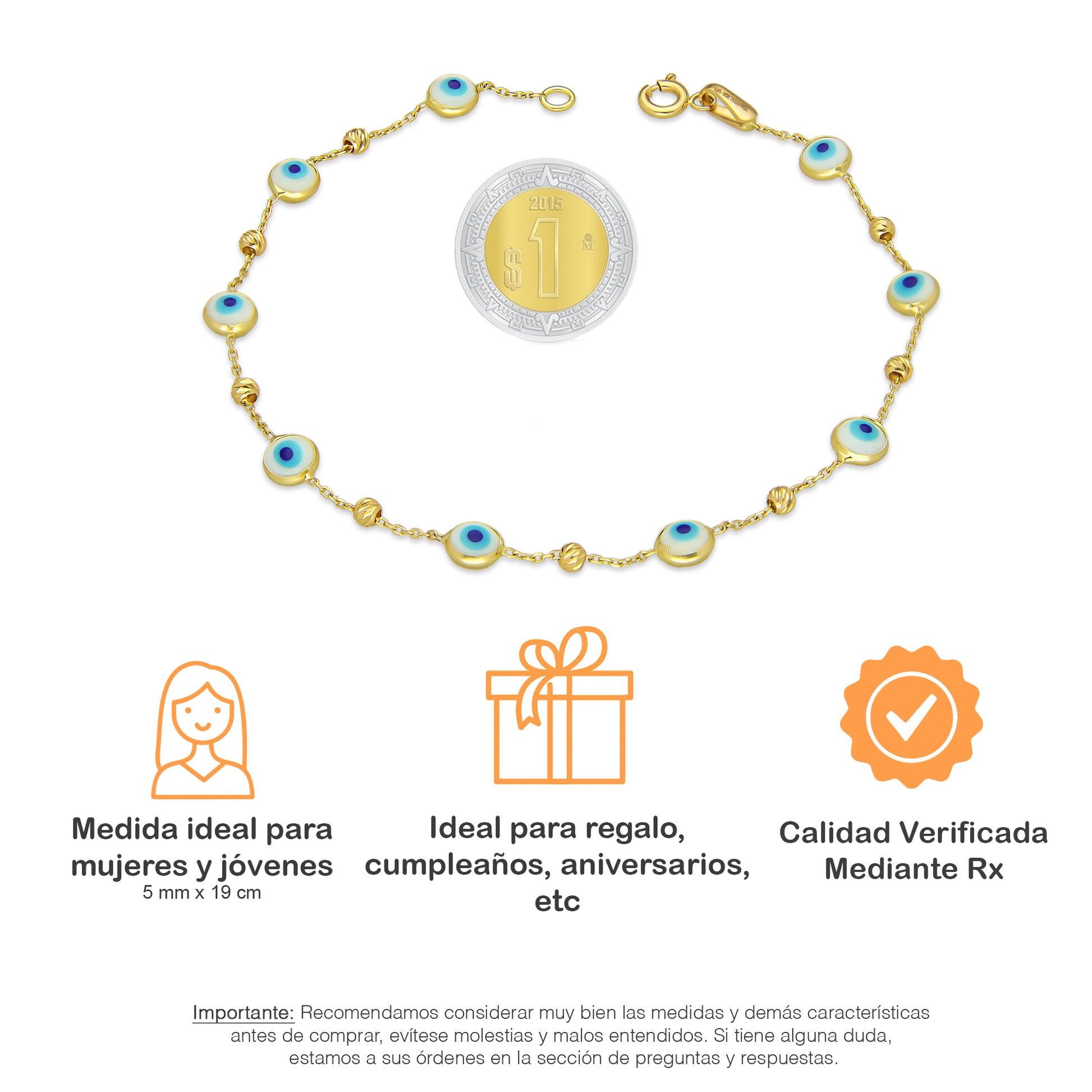 MR14PD142 Pulsera Dama Oro Sólido 14K EMF14 Modelo Ojitos Turcos Super Ligera Oro Amarillo 5 mm x 19 cm
