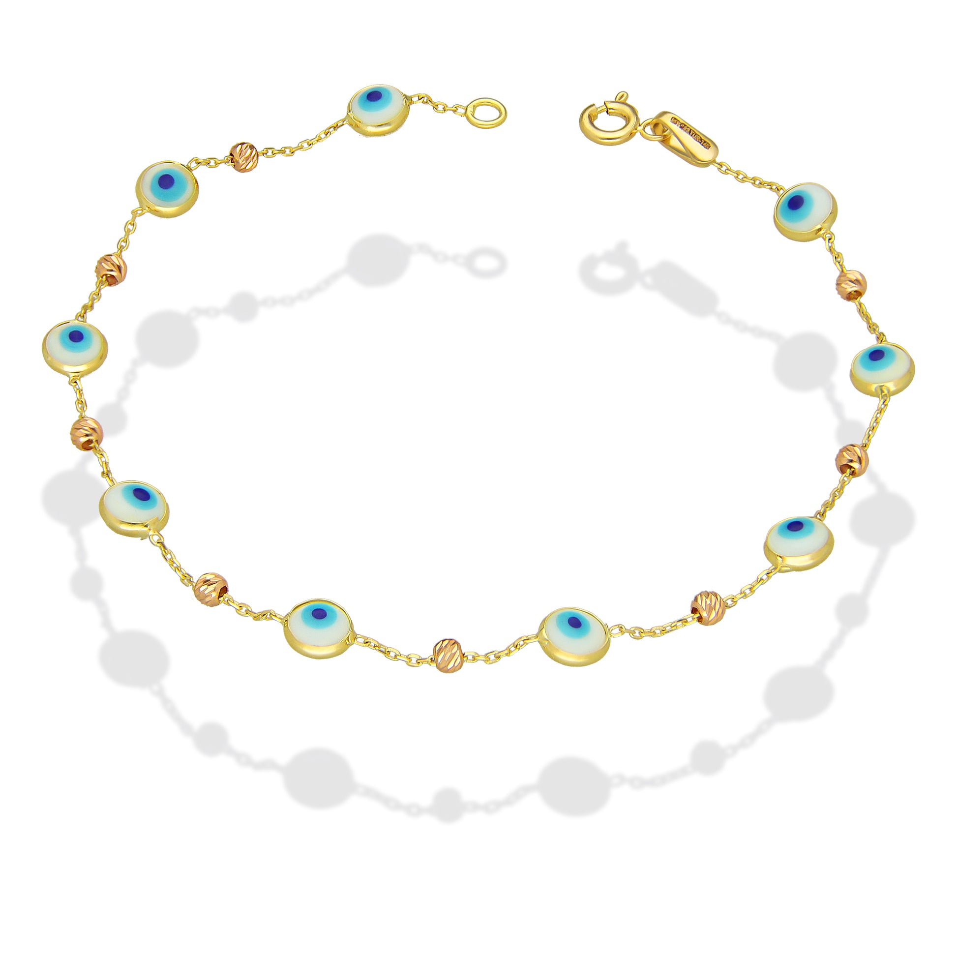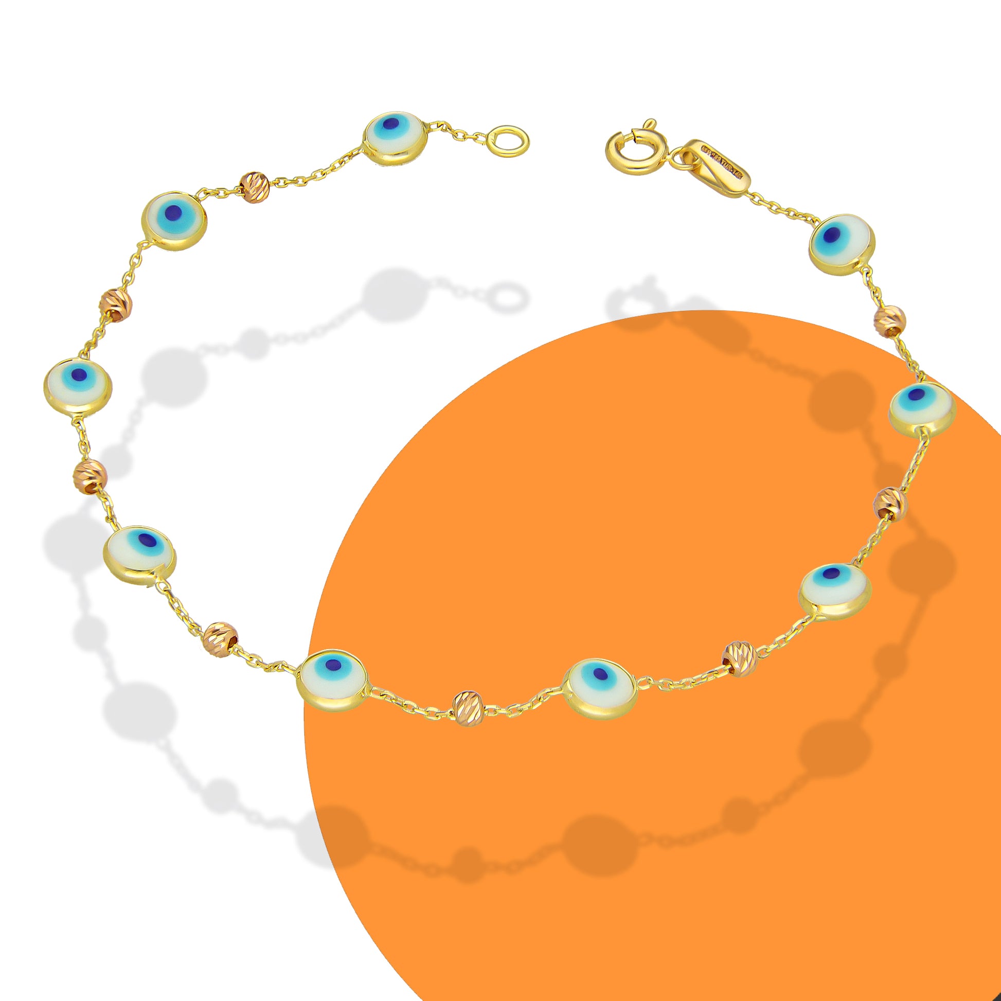 MR14PD143 Pulsera Dama Oro Sólido 14K EMF14 Modelo Ojitos Turcos Super Ligera Florentino 5 mm x 19 cm