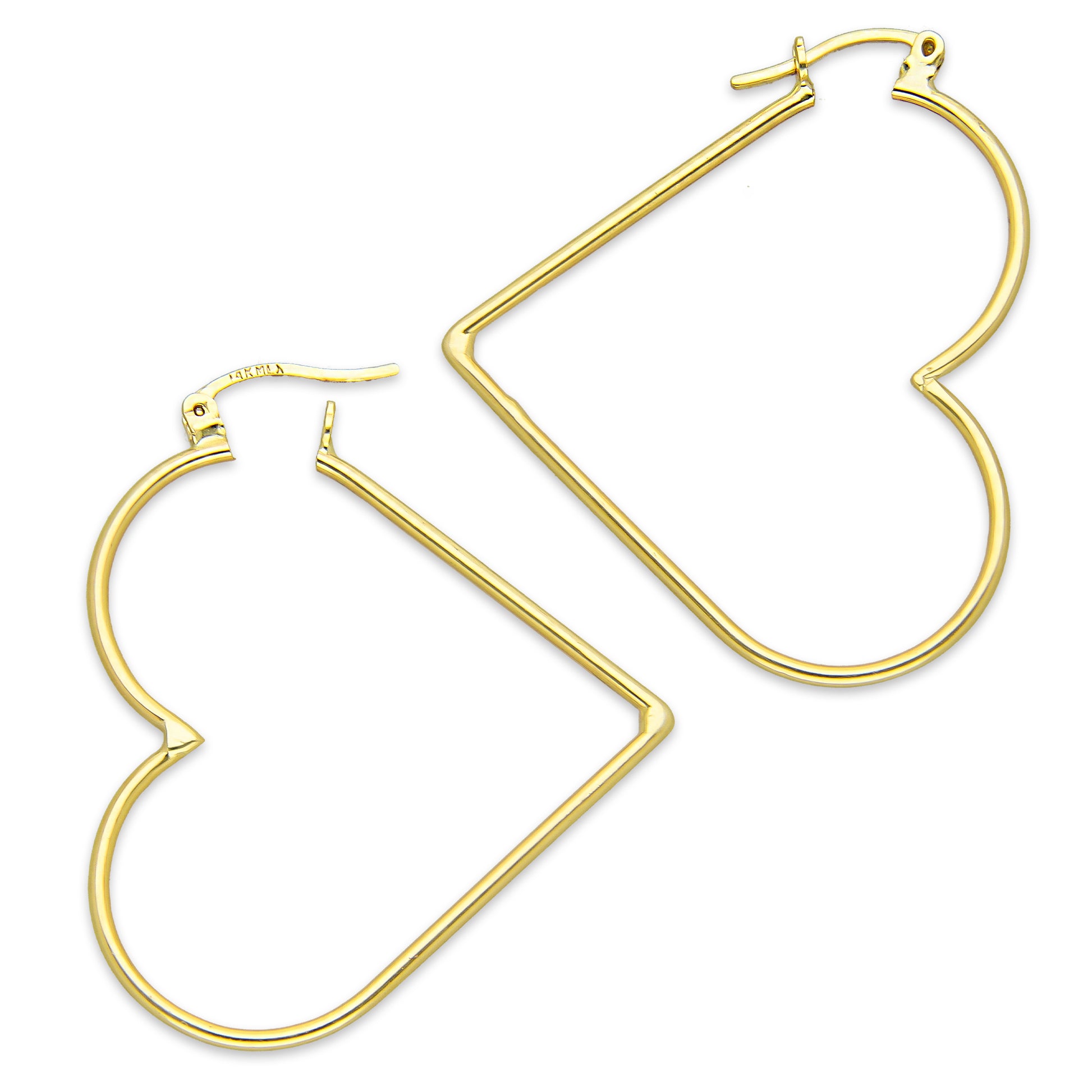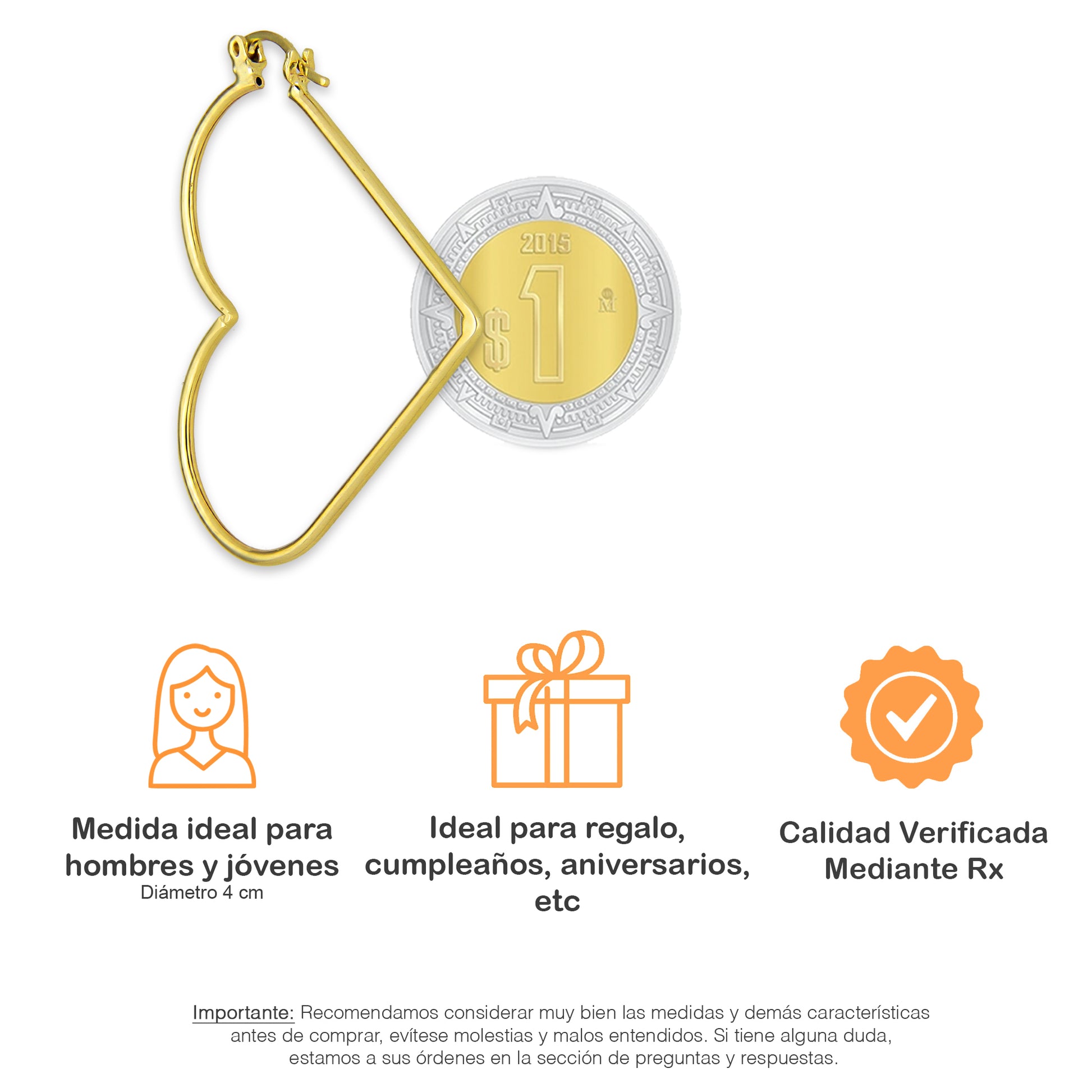 NR14AR048 Arete Arracada Oro Sólido 14K Corazón Liso Diámetro 4 cm
