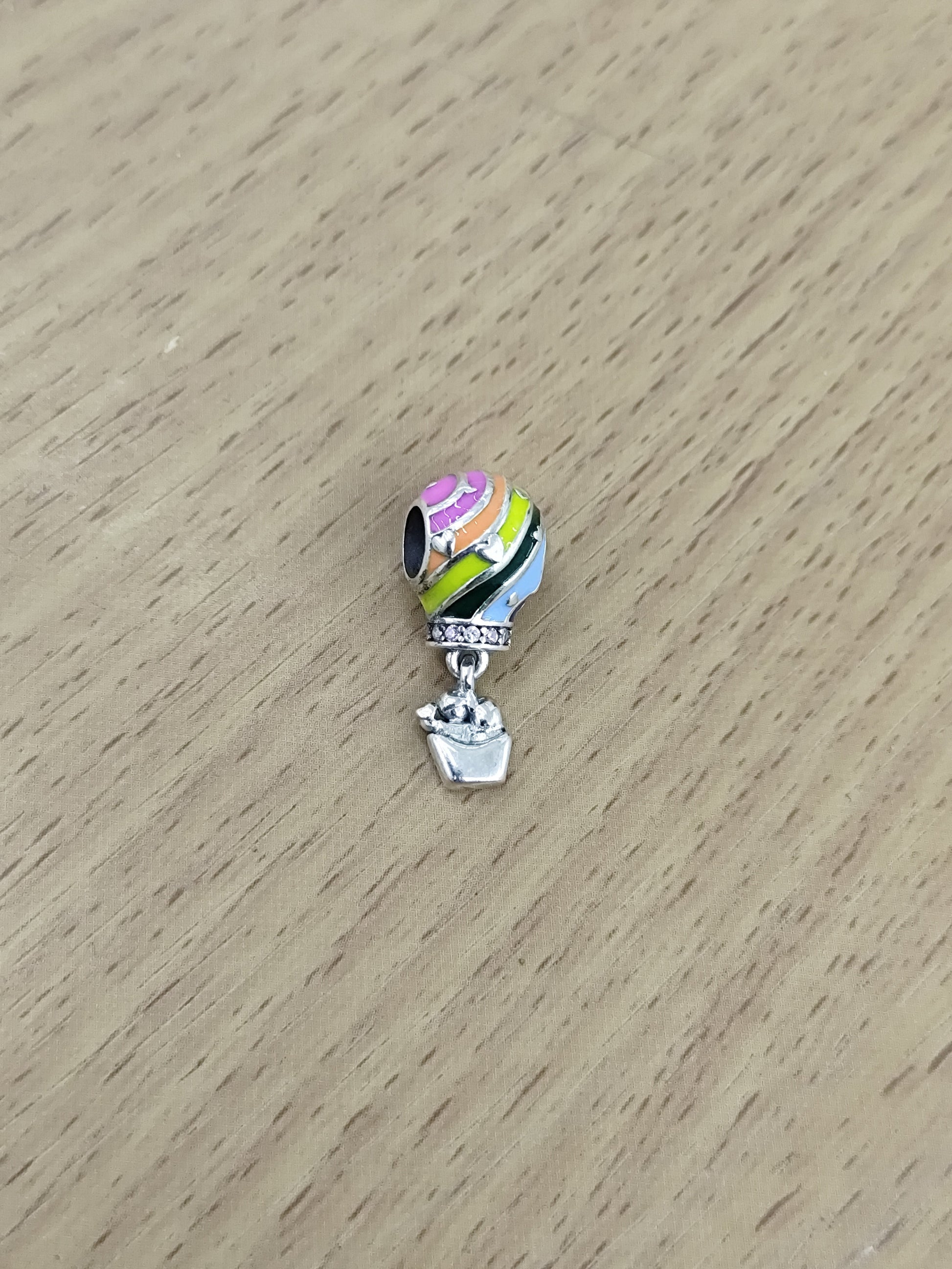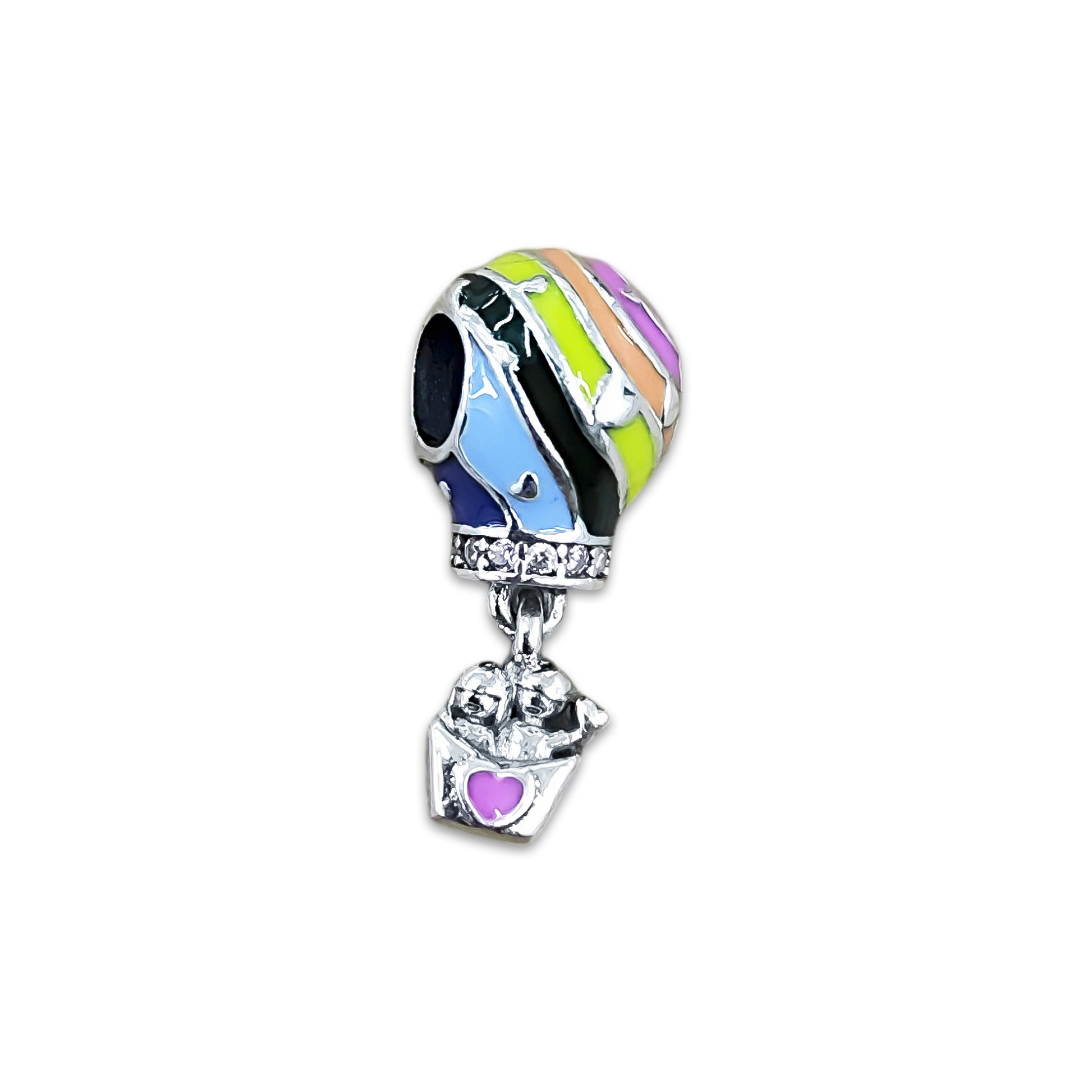 TMPCH018 Dije Charm Pand Globo Aerostático Multicolor Corazones en Plata Fina .925