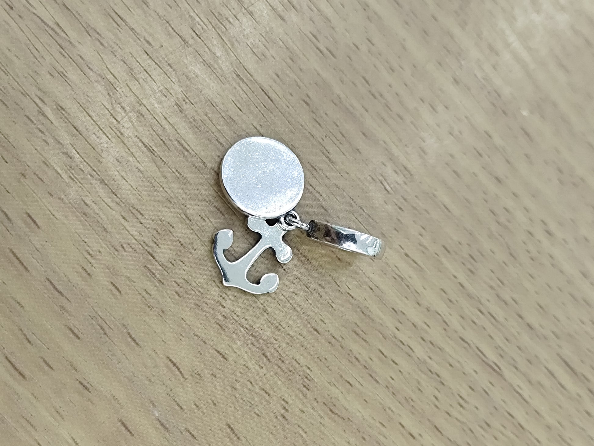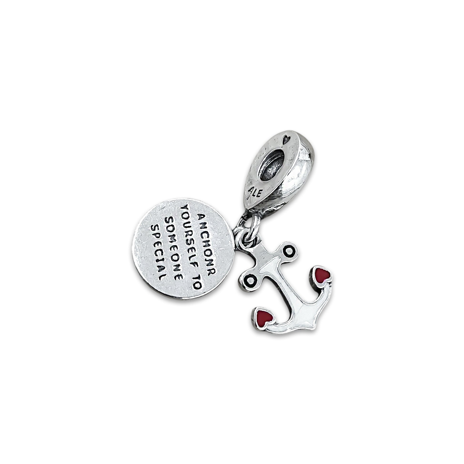 TMPCH024 Dije Charm Pand Ancla con Esmalte Blanco en Plata Fina .925