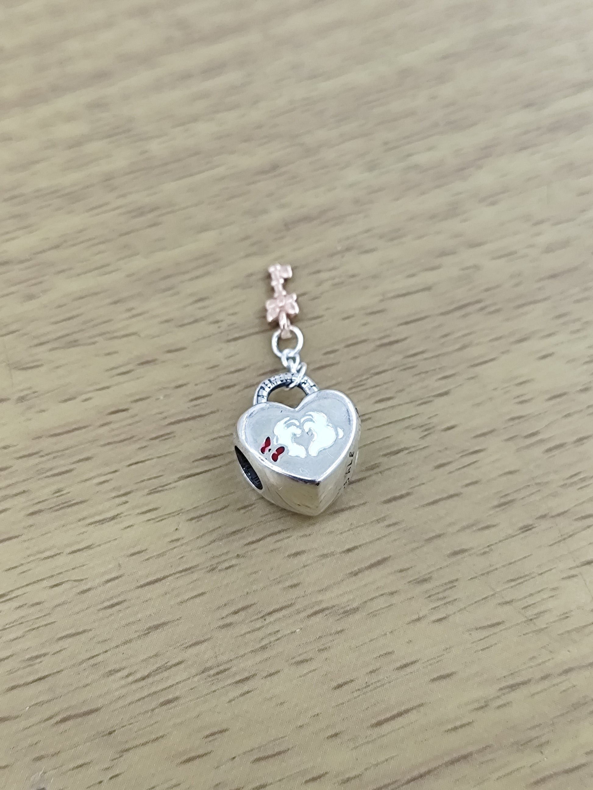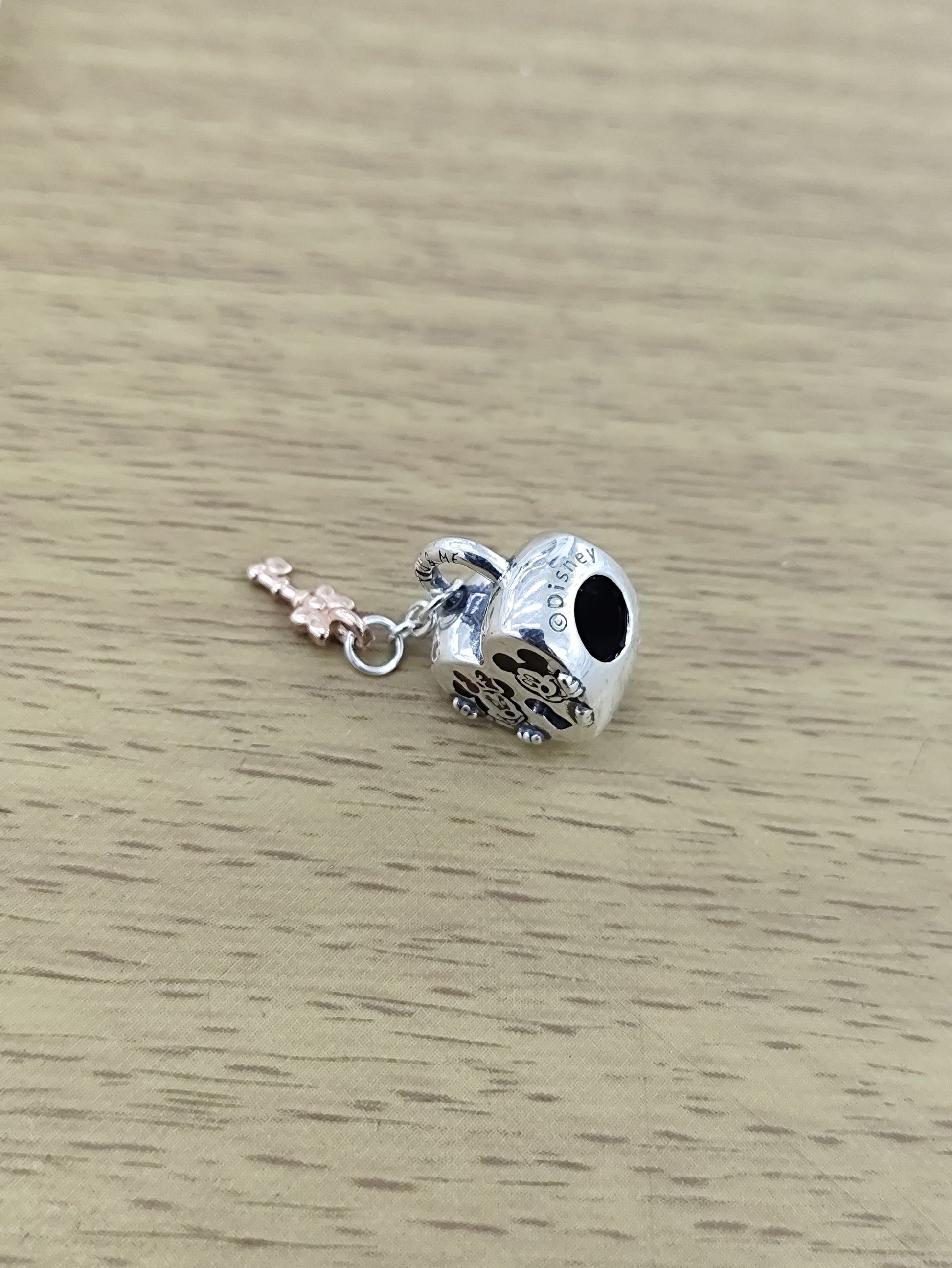 TMPCH027 Dije Charm Pand Corazón con Llave Minnie y Mickey en Plata Fina .925