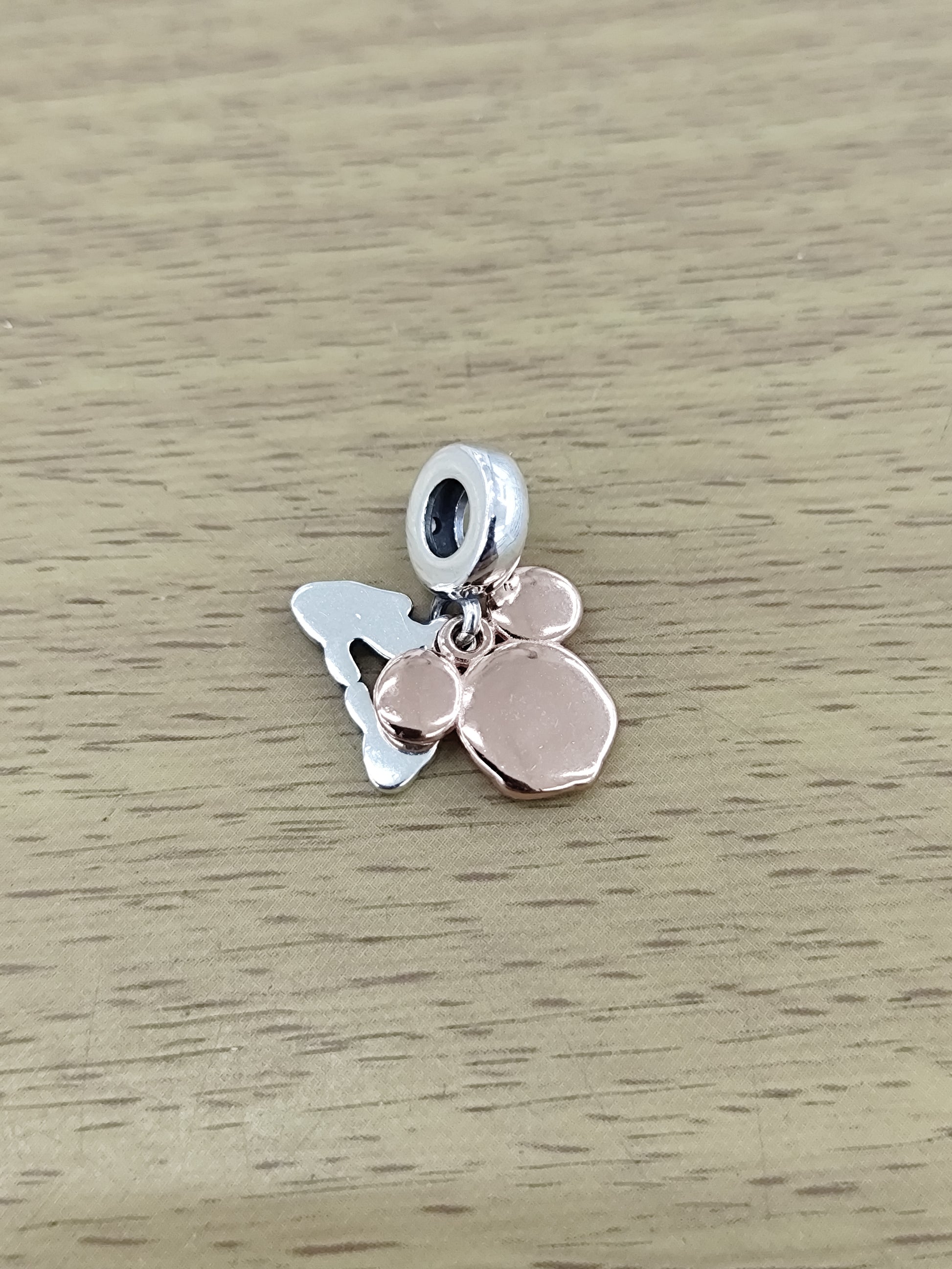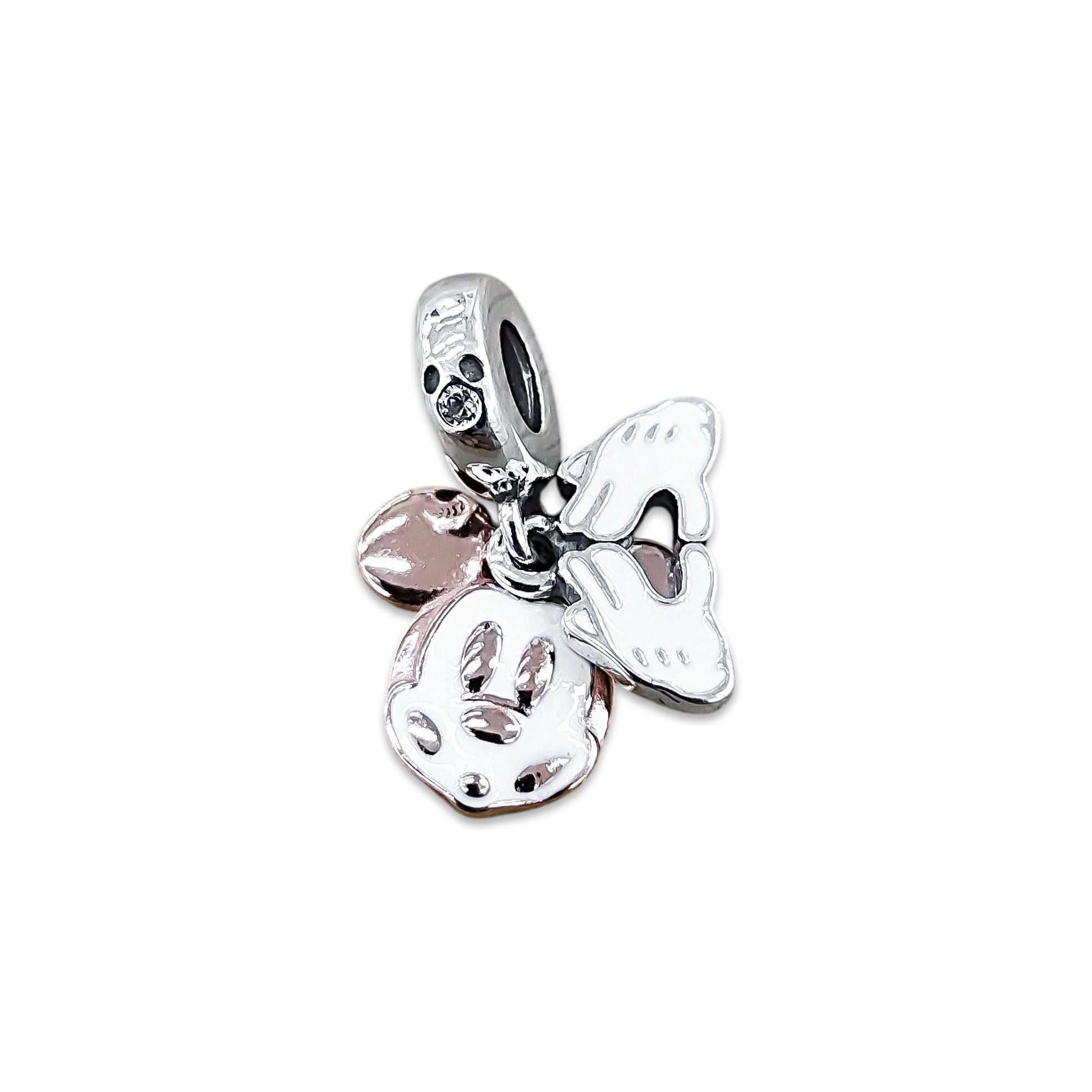 TMPCH031 Dije Charm Pand Mickey Manos Plata Rosa con Esmalte Blanco en Plata Fina .925