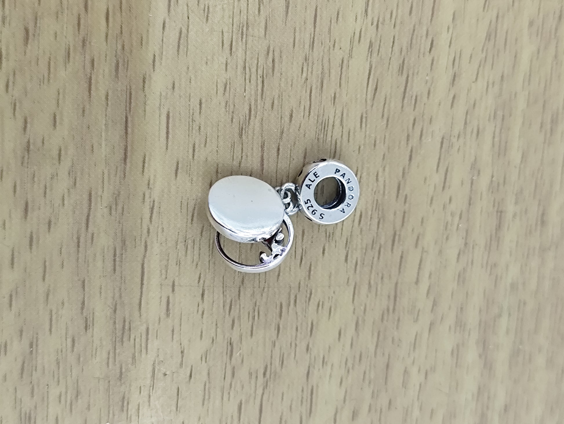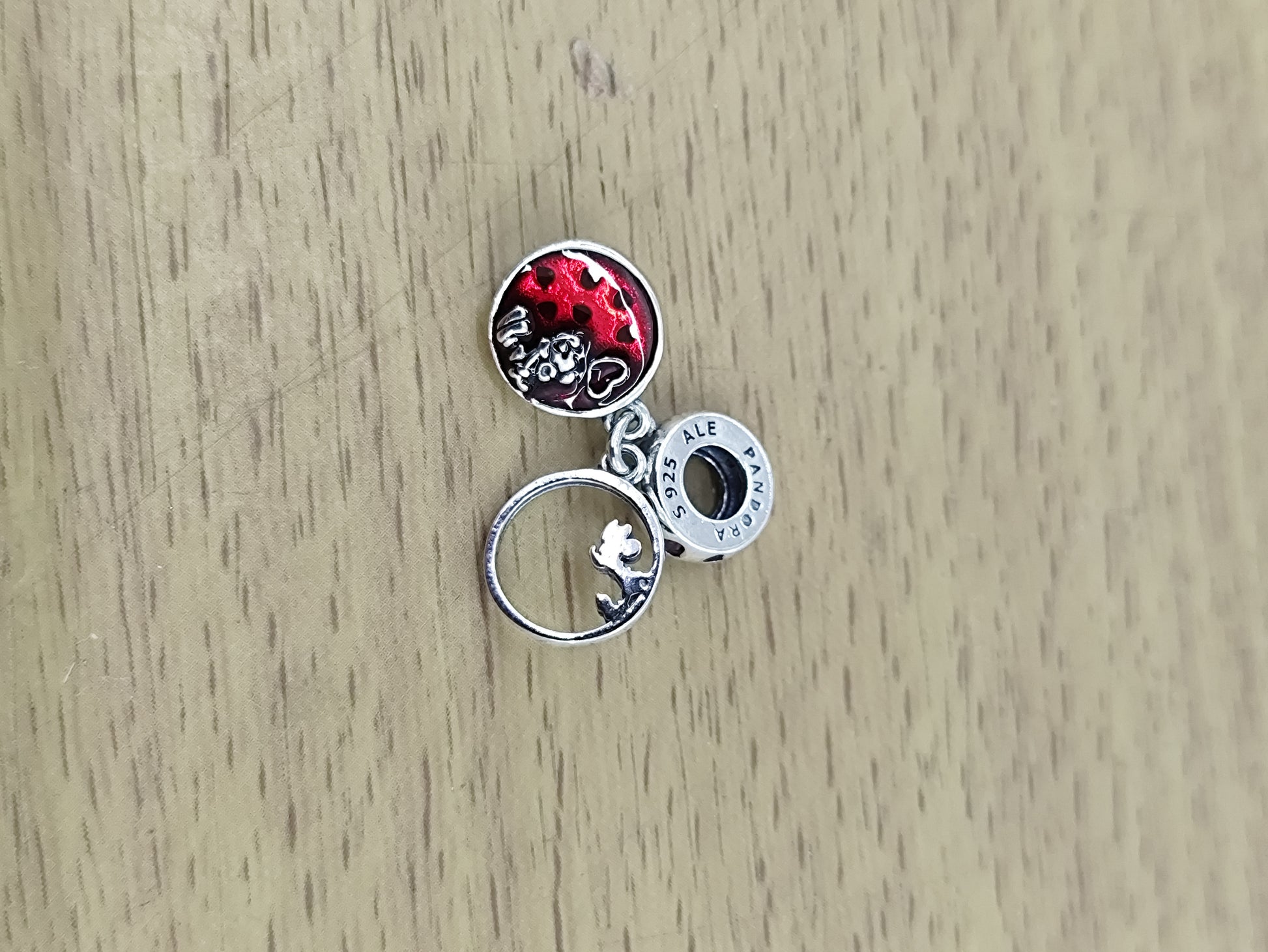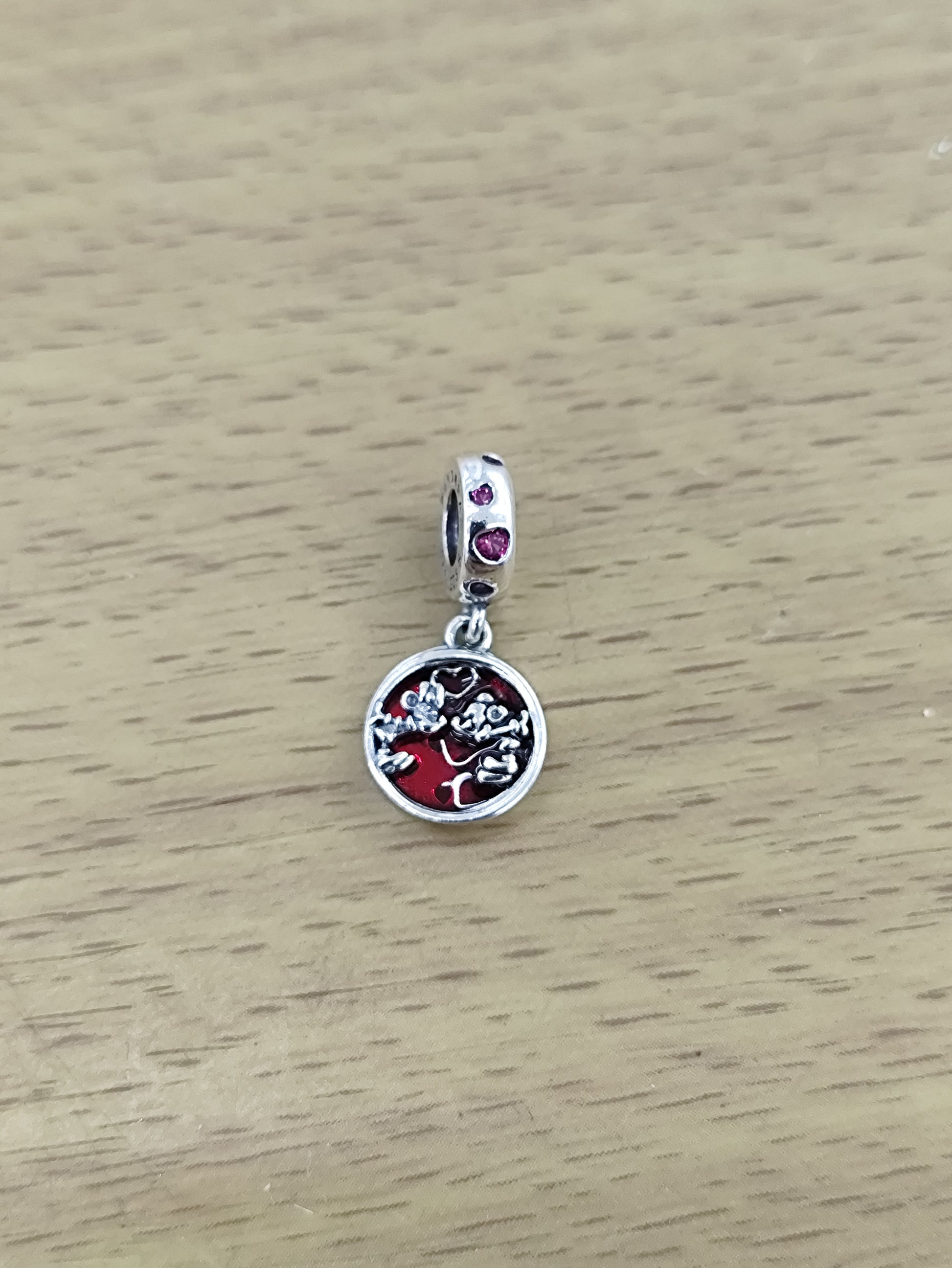 TMPCH042 Dije Charm Pand Circulo Mickey y Minnie Kissing en Plata Fina .925