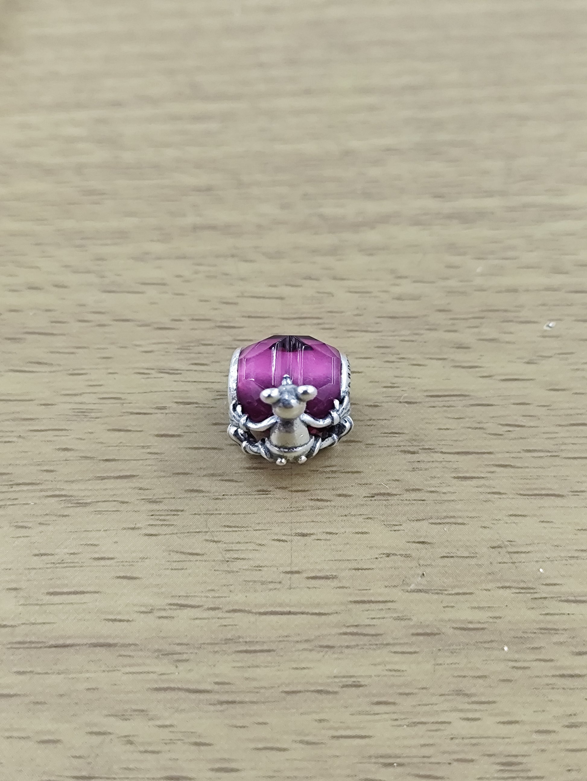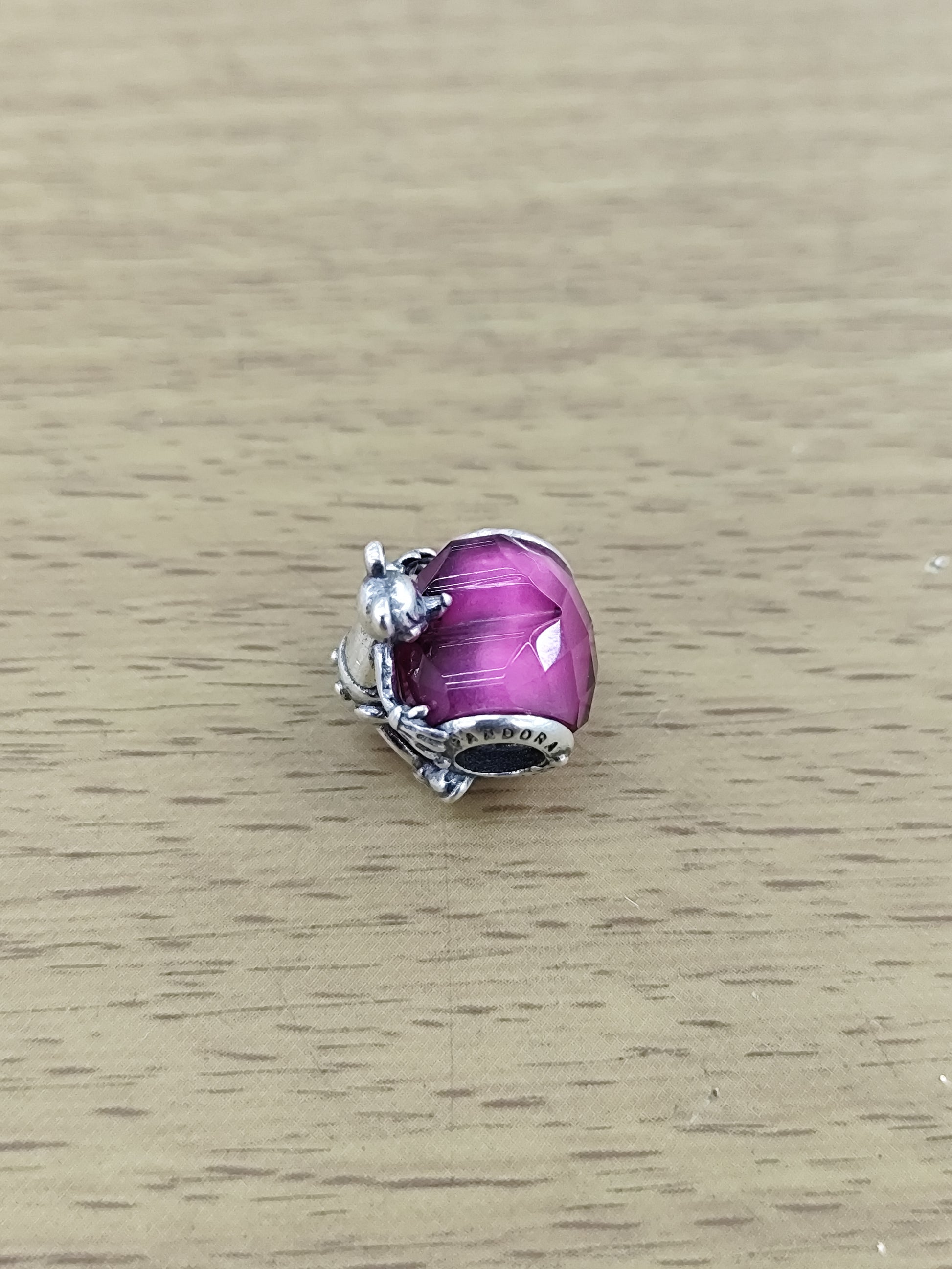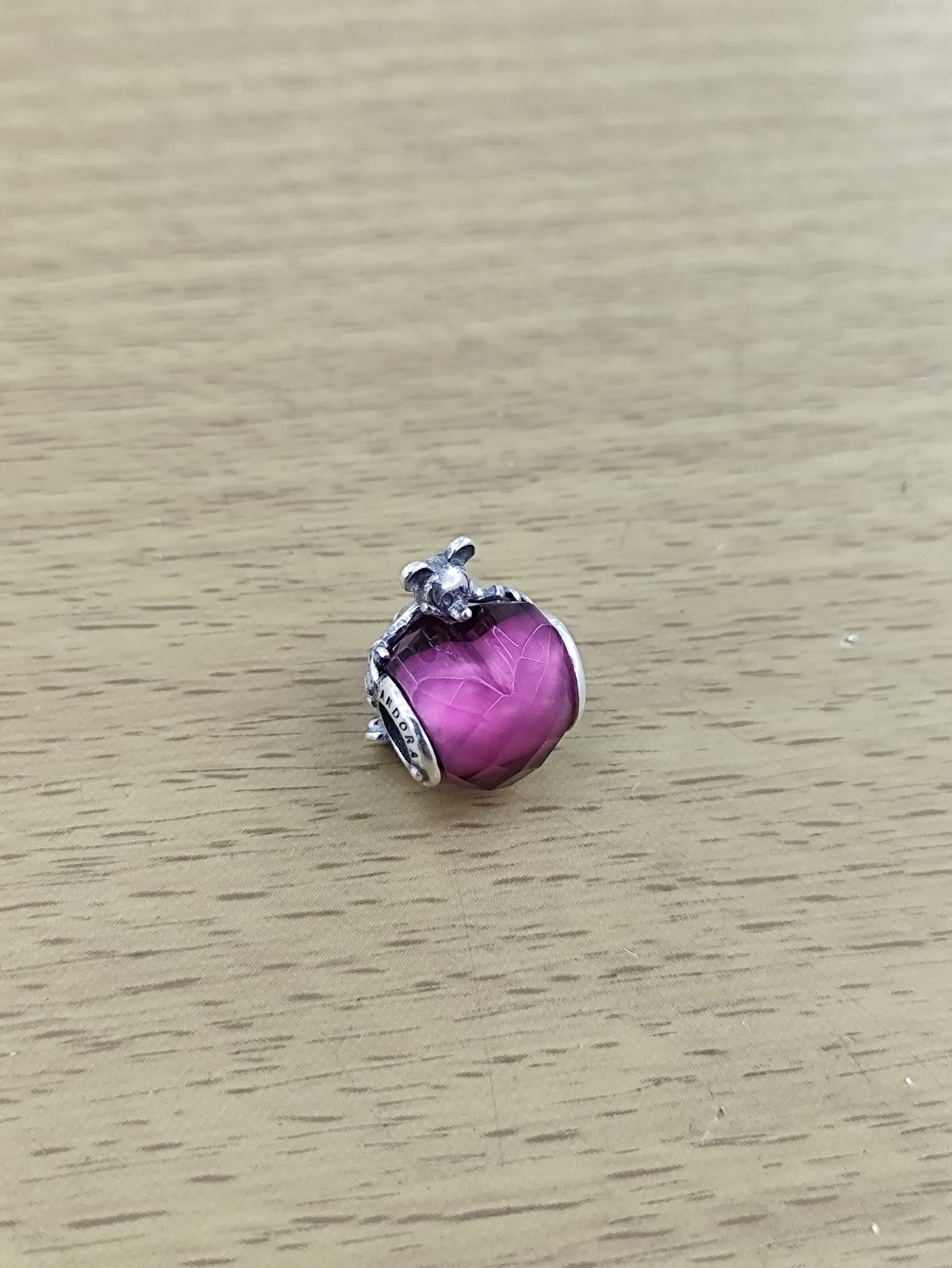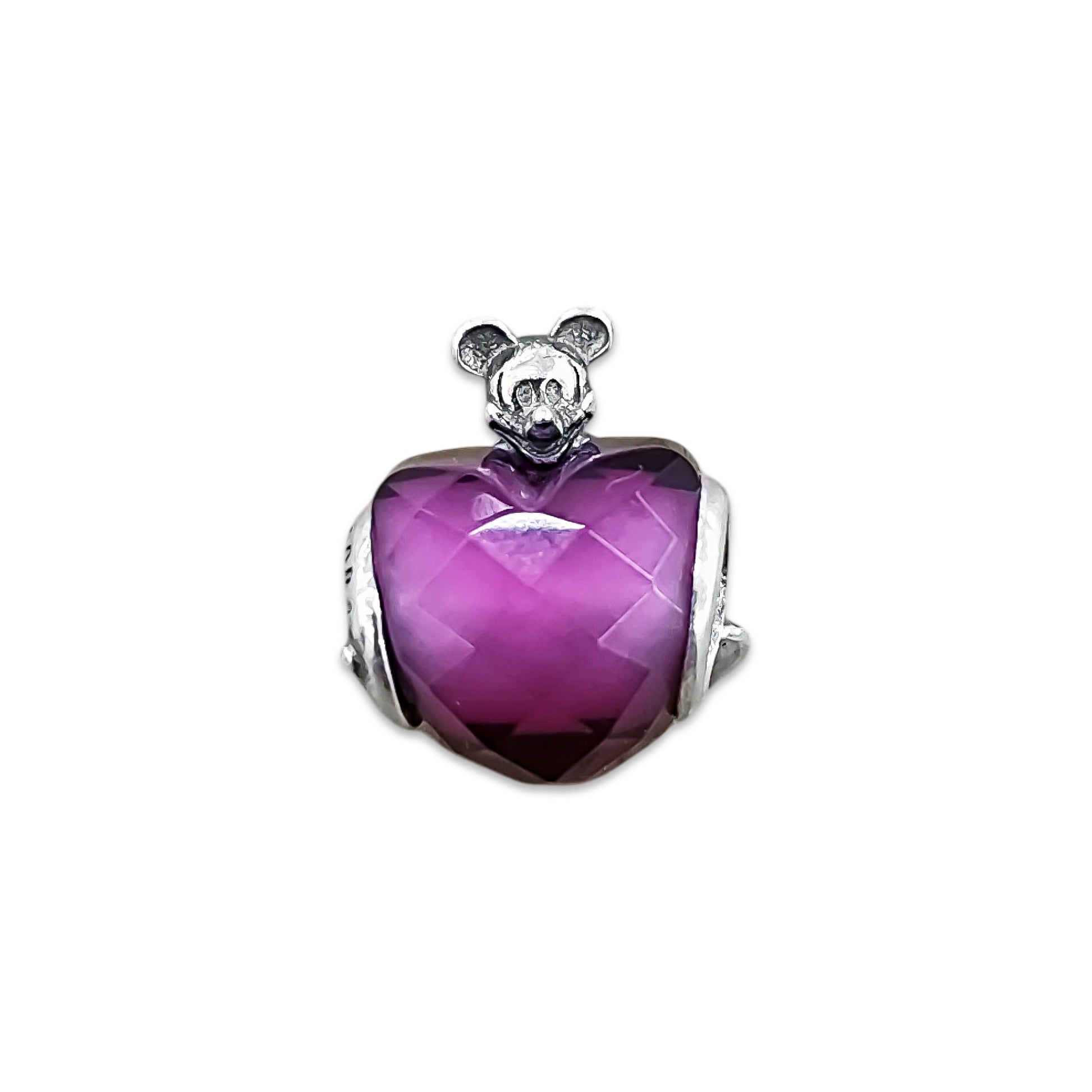 TMPCH044 Dije Charm Pand Mickey Abrazando Corazón Morado en Plata Fina .925