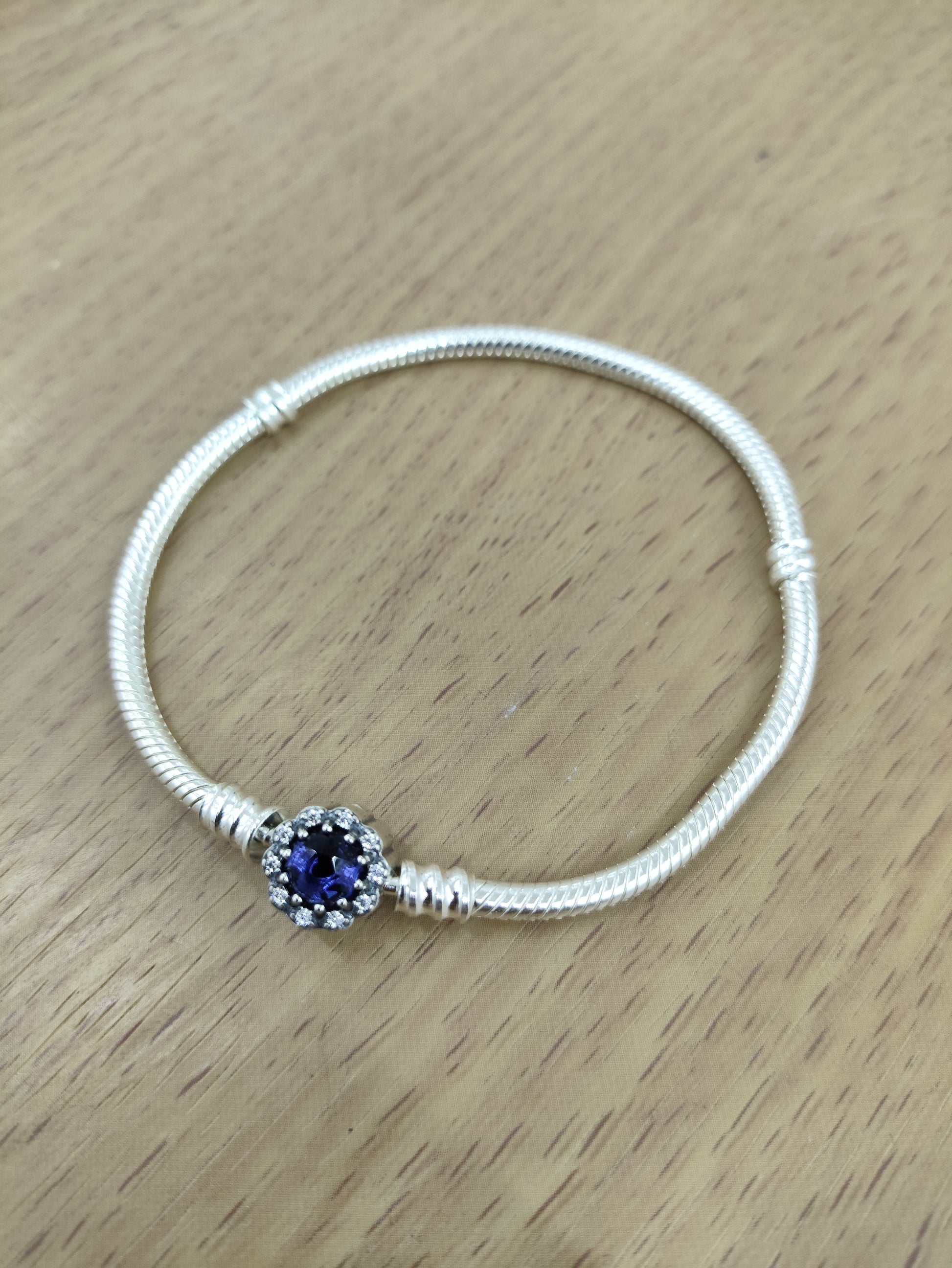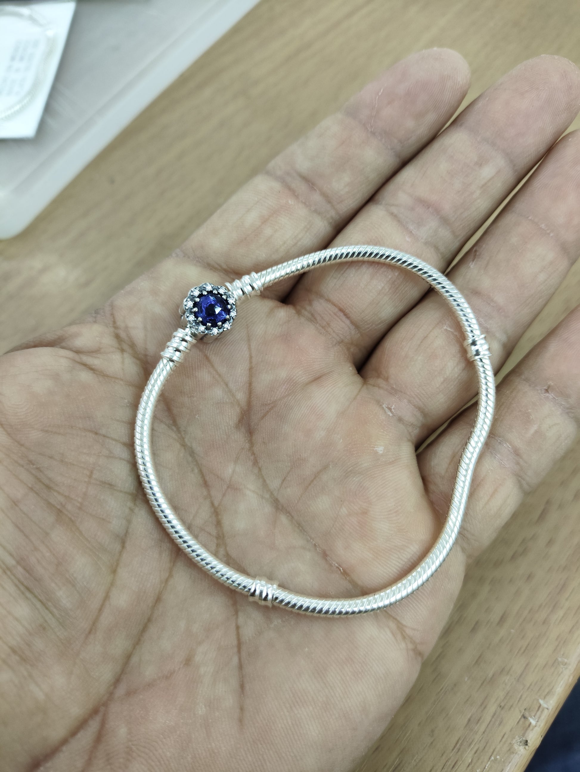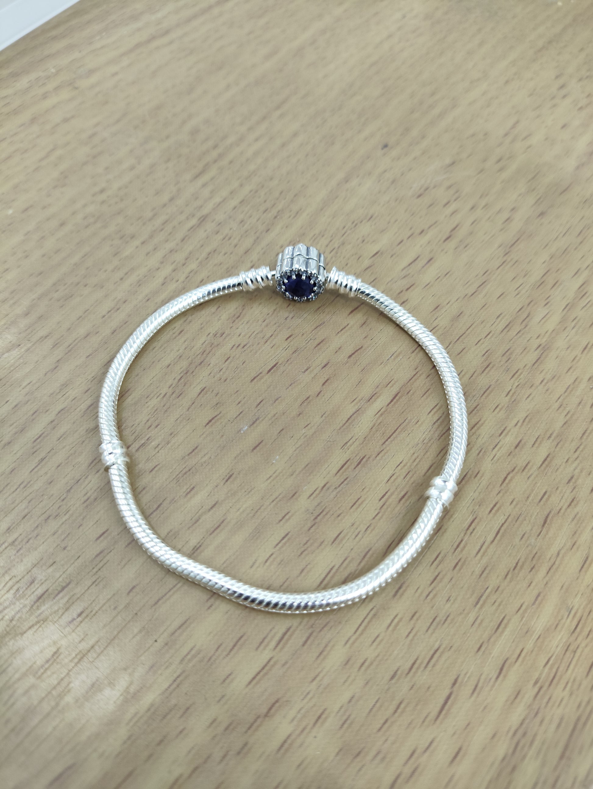 TMPPD004-19 Pulsera Dama Pand Círculo Zirconia Centro Azul 19 cm en Plata Fina .925