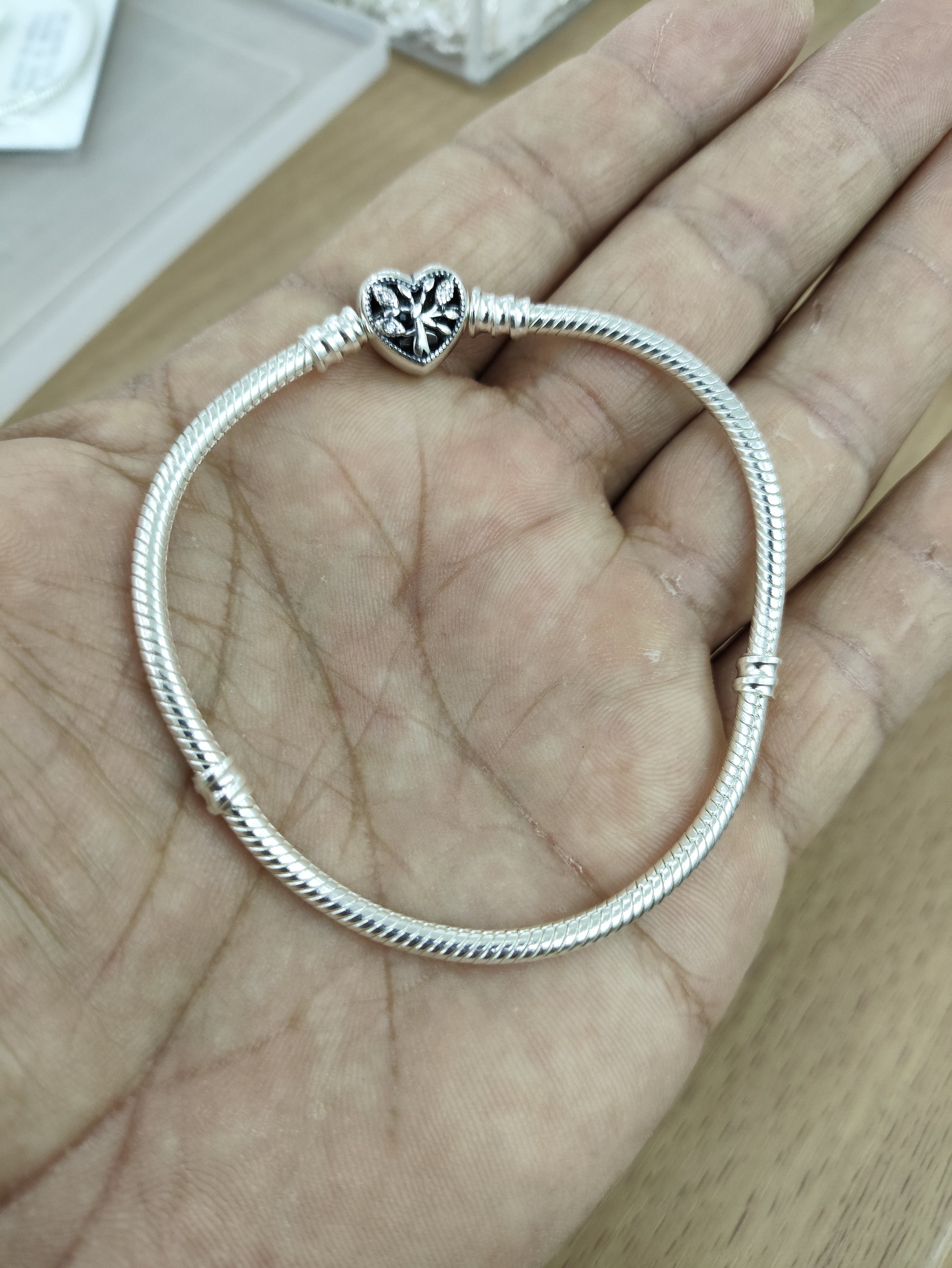 TMPPD005-18 Pulsera Dama Pand Corazón Floral 18 cm en Plata Fina .925