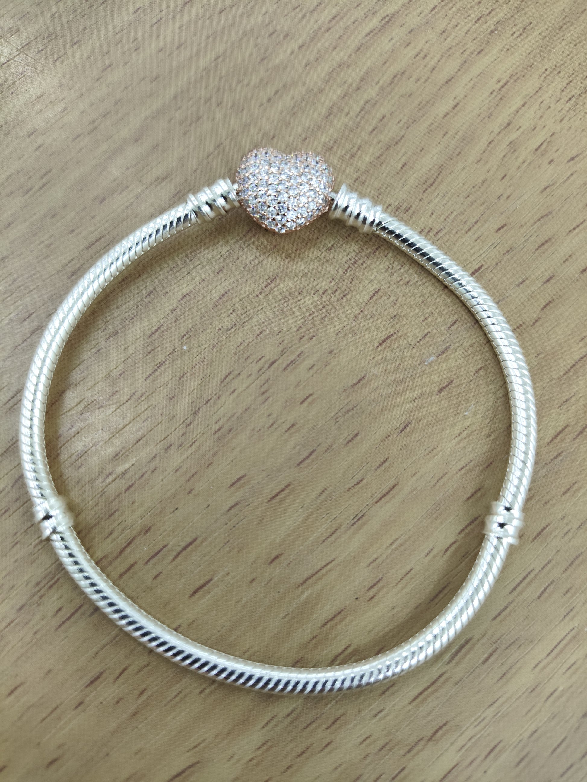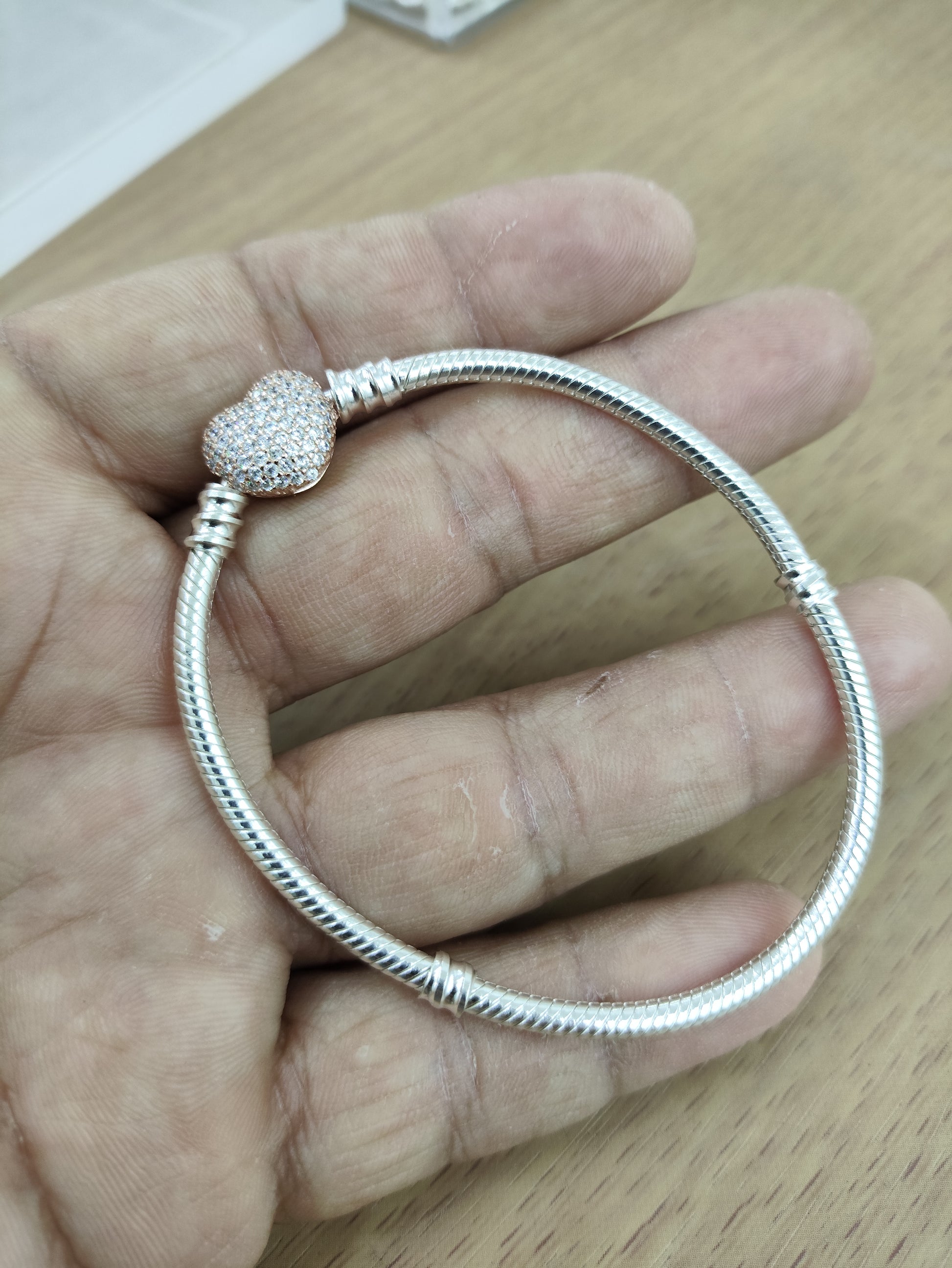 TMPPD007-17 Pulsera Dama Pand Corazón Plata Rosa Pavé 17 cm en Plata Fina .925