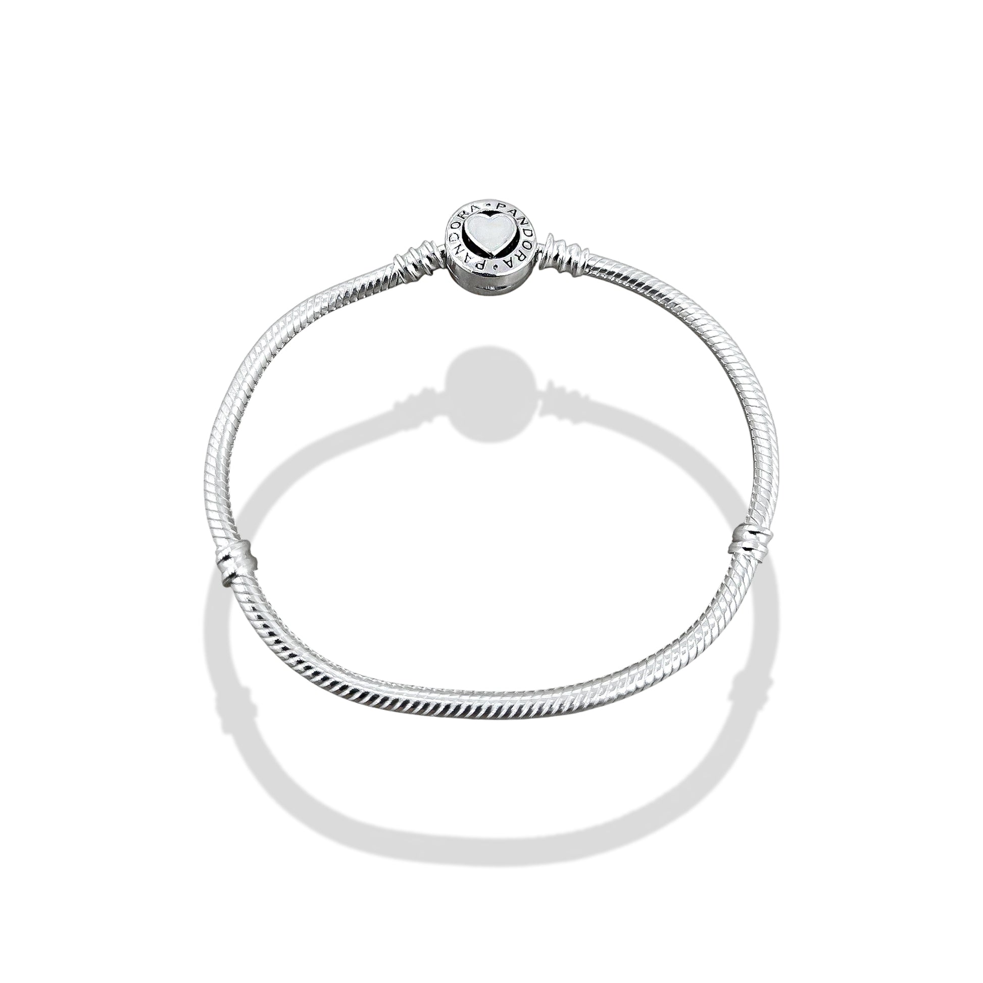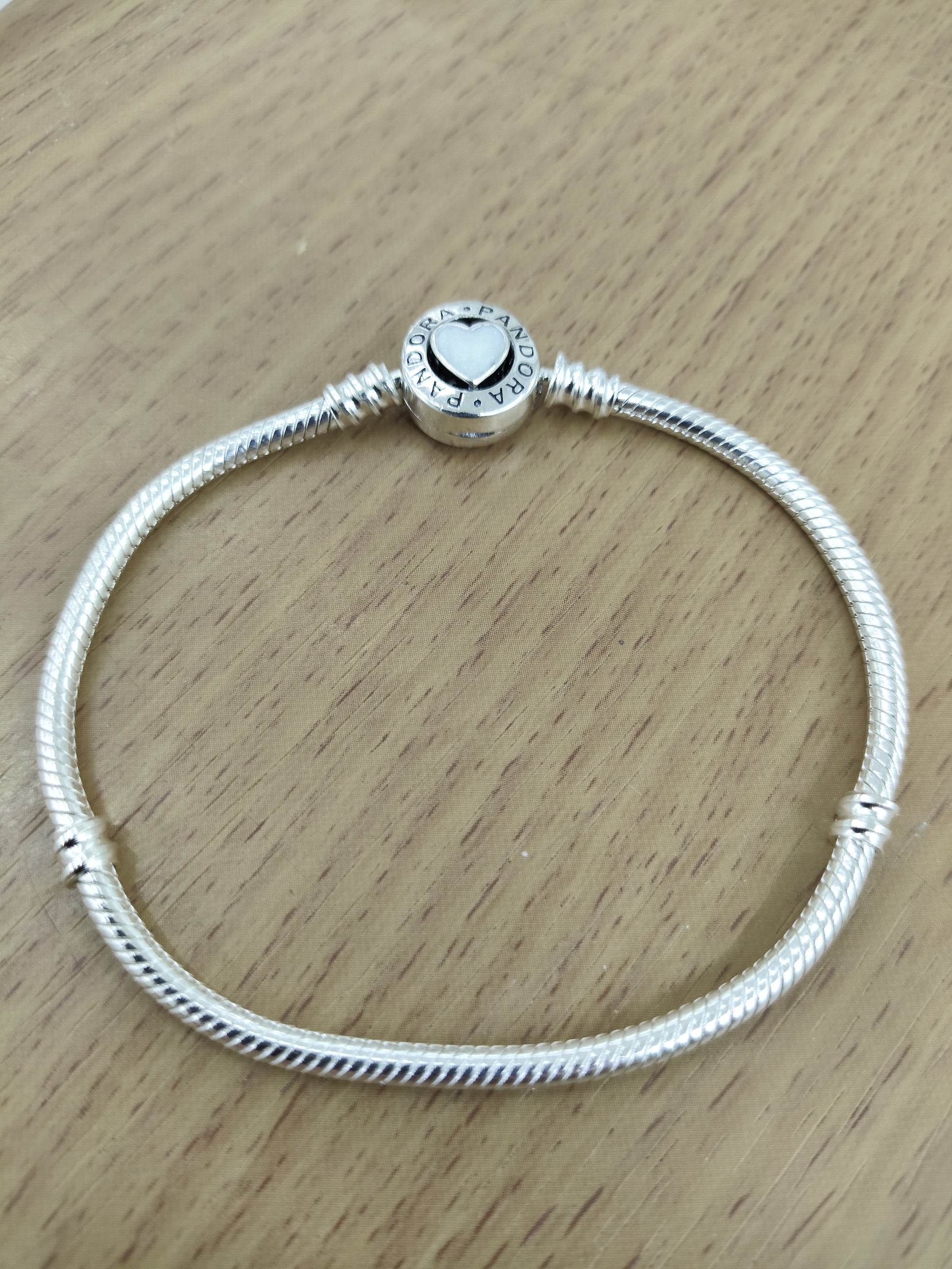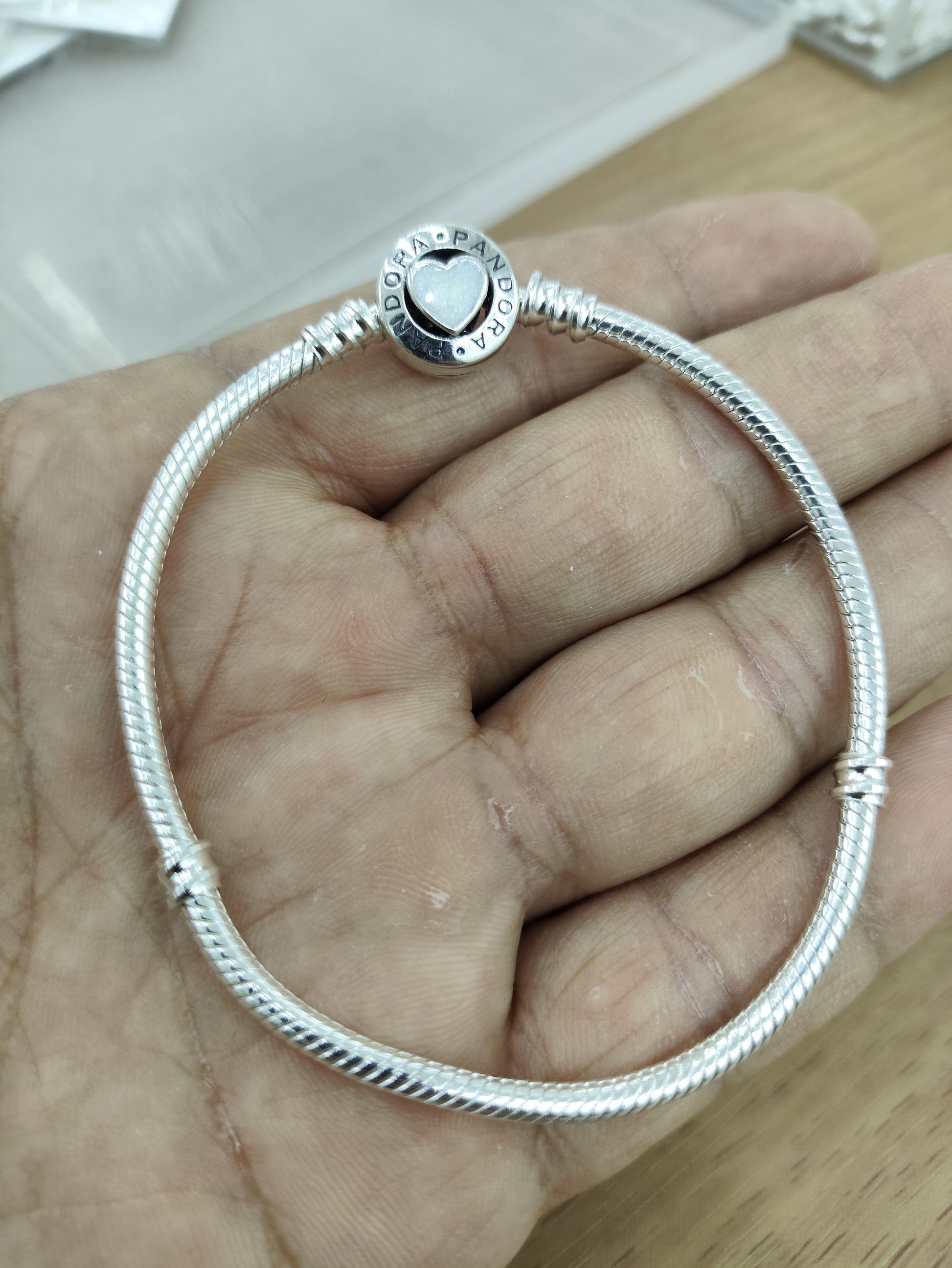 TMPPD011-18 Pulsera Dama Pand Corazón Centro Blanco 18 cm en Plata Fina .925
