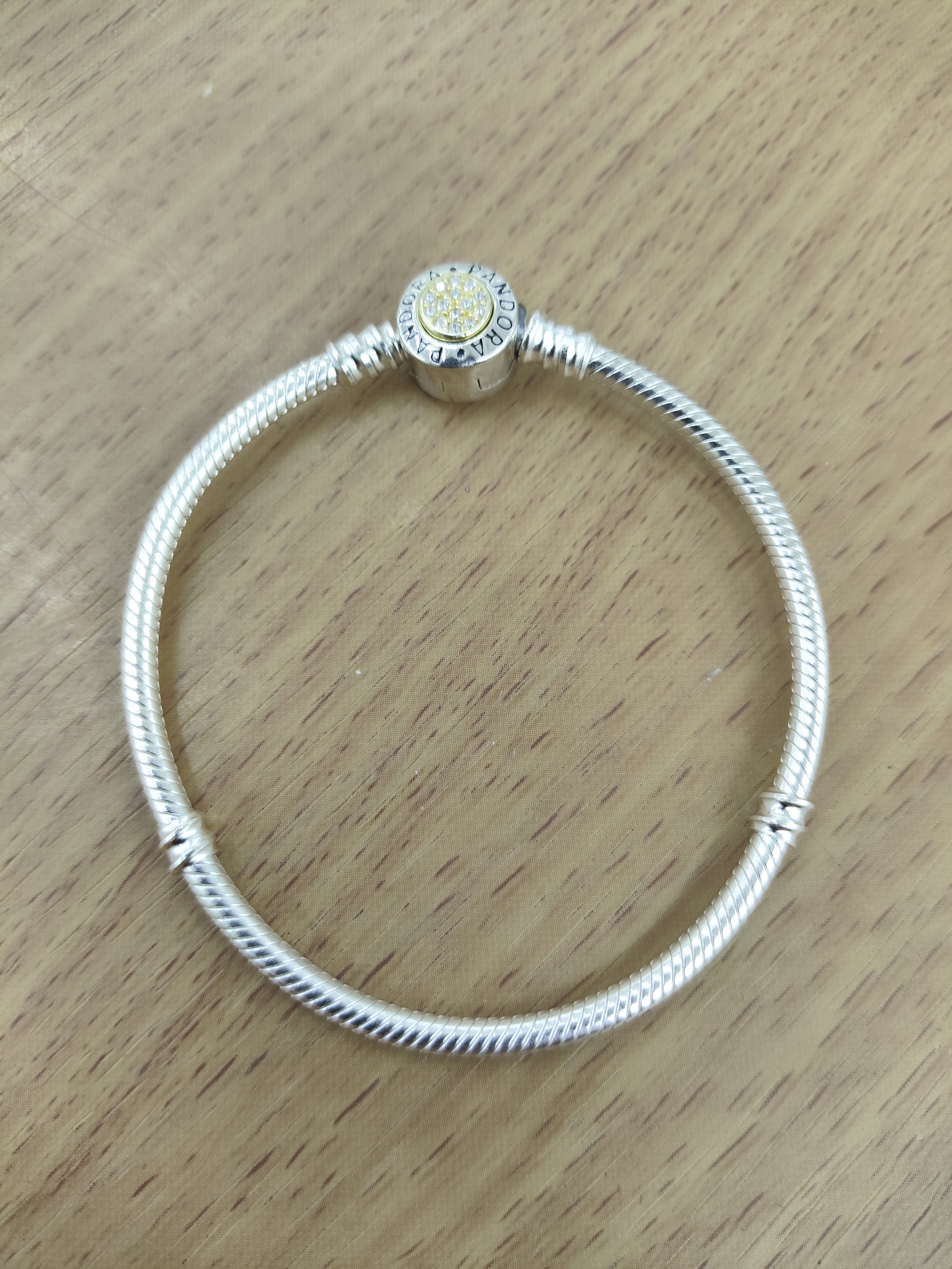 TMPPD013-17 Pulsera Dama Pand Círculo Centro Dorado 17 cm en Plata Fina .925