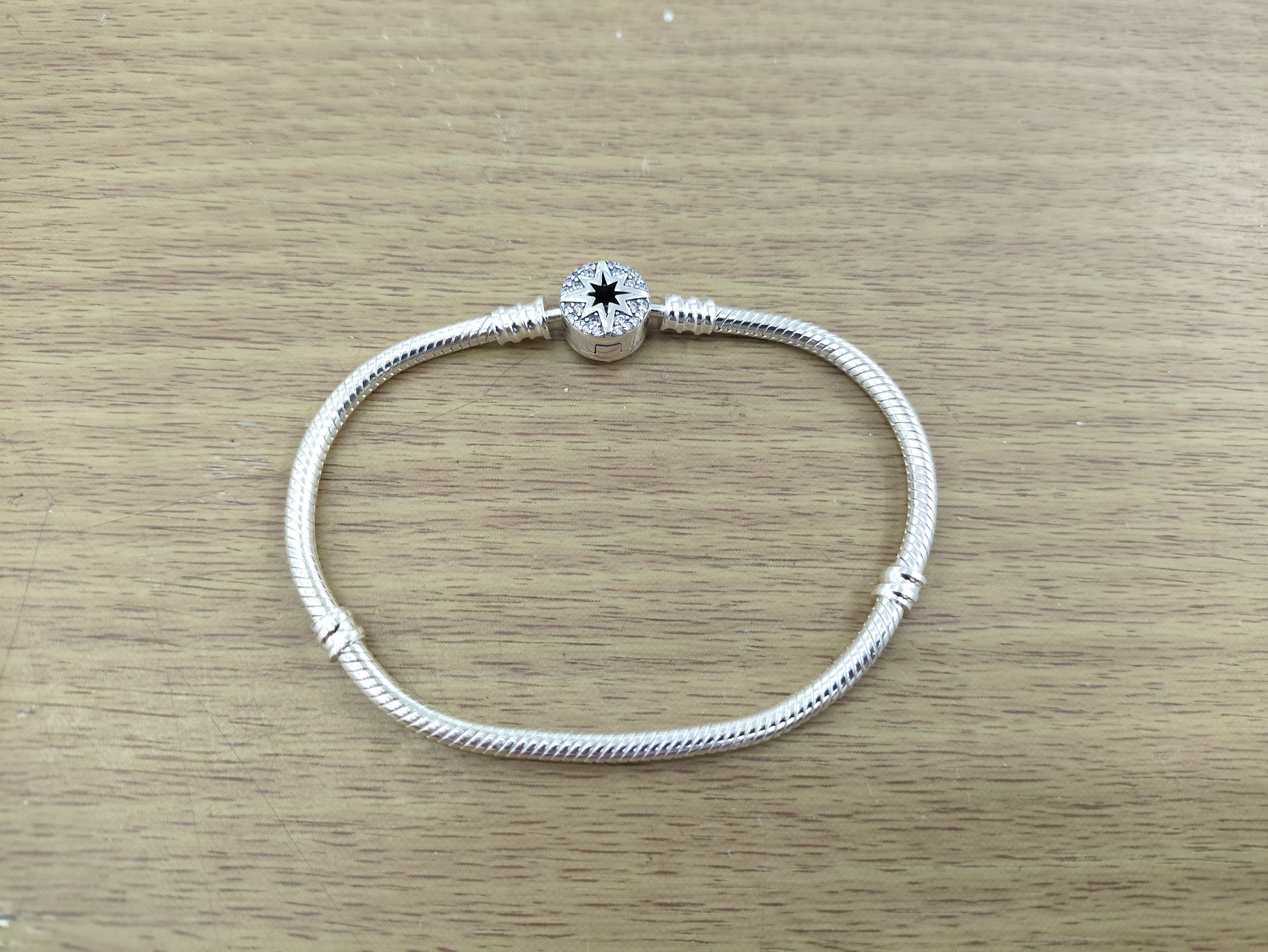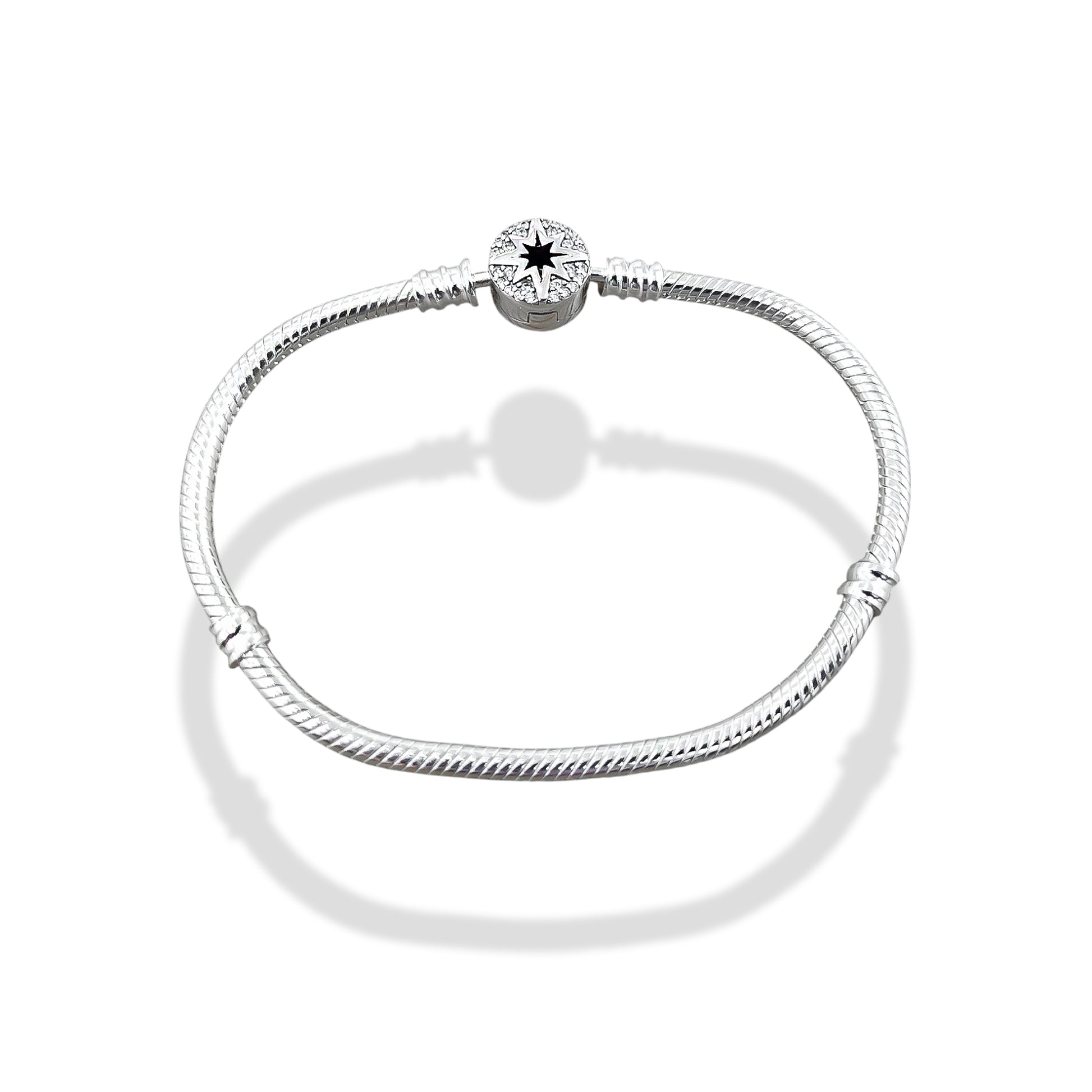 TMPPD018-17 Pulsera Dama Pand Círculo Estrella Centro Negro 17 cm en Plata Fina .925