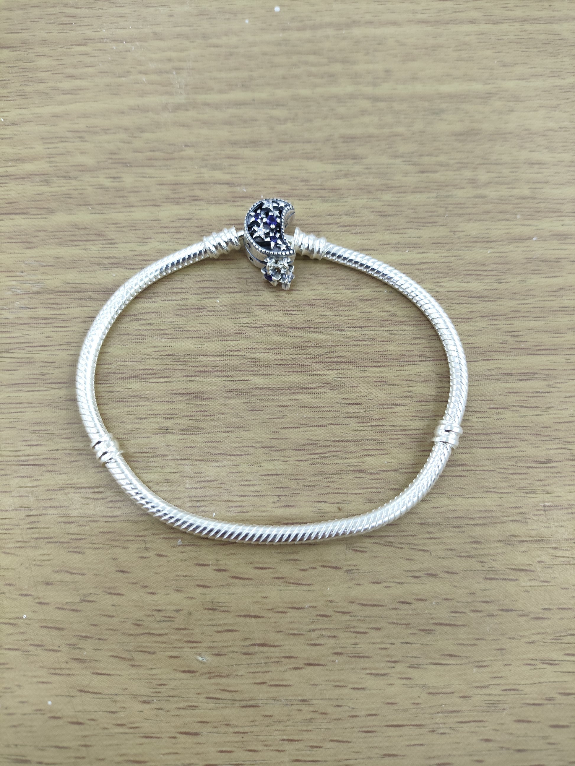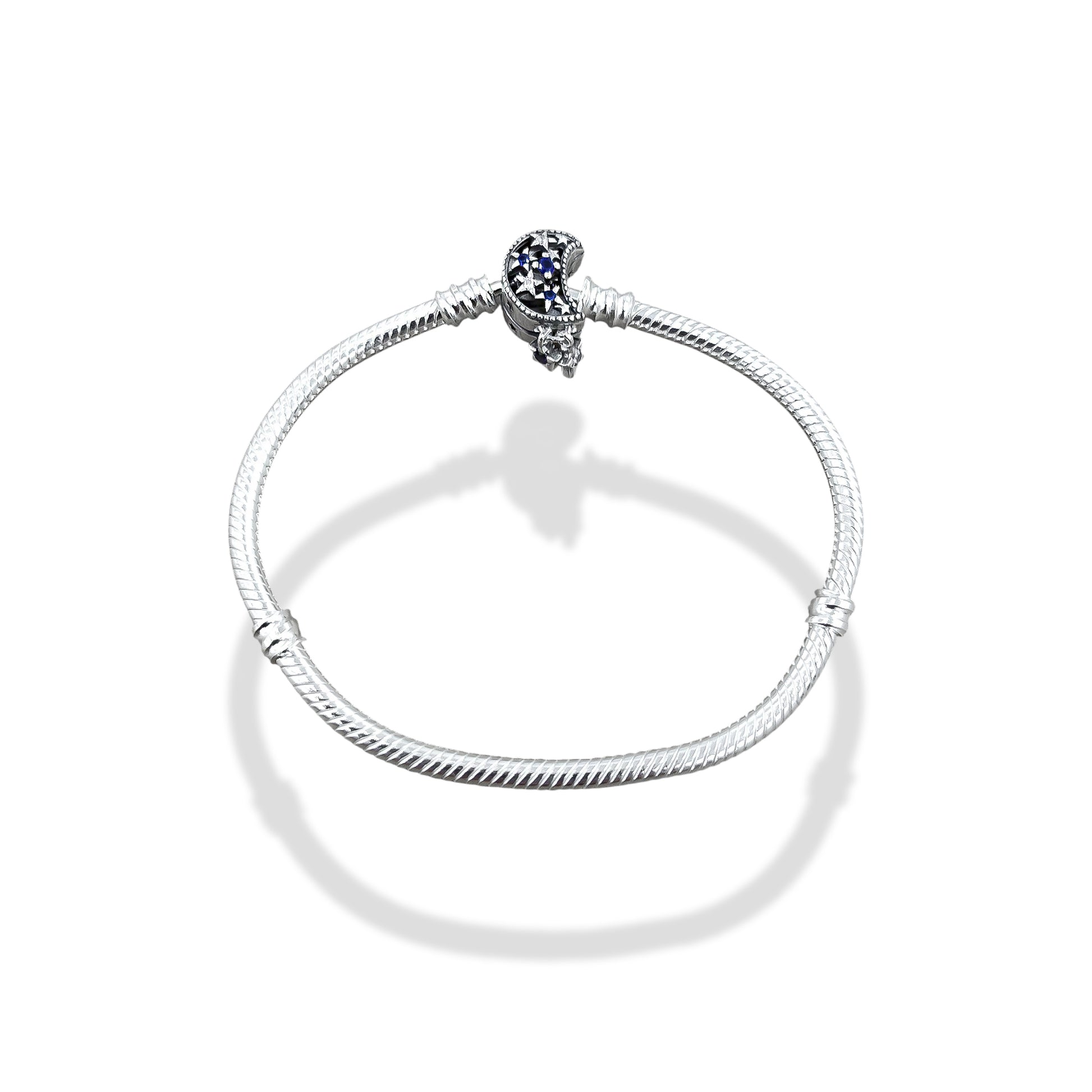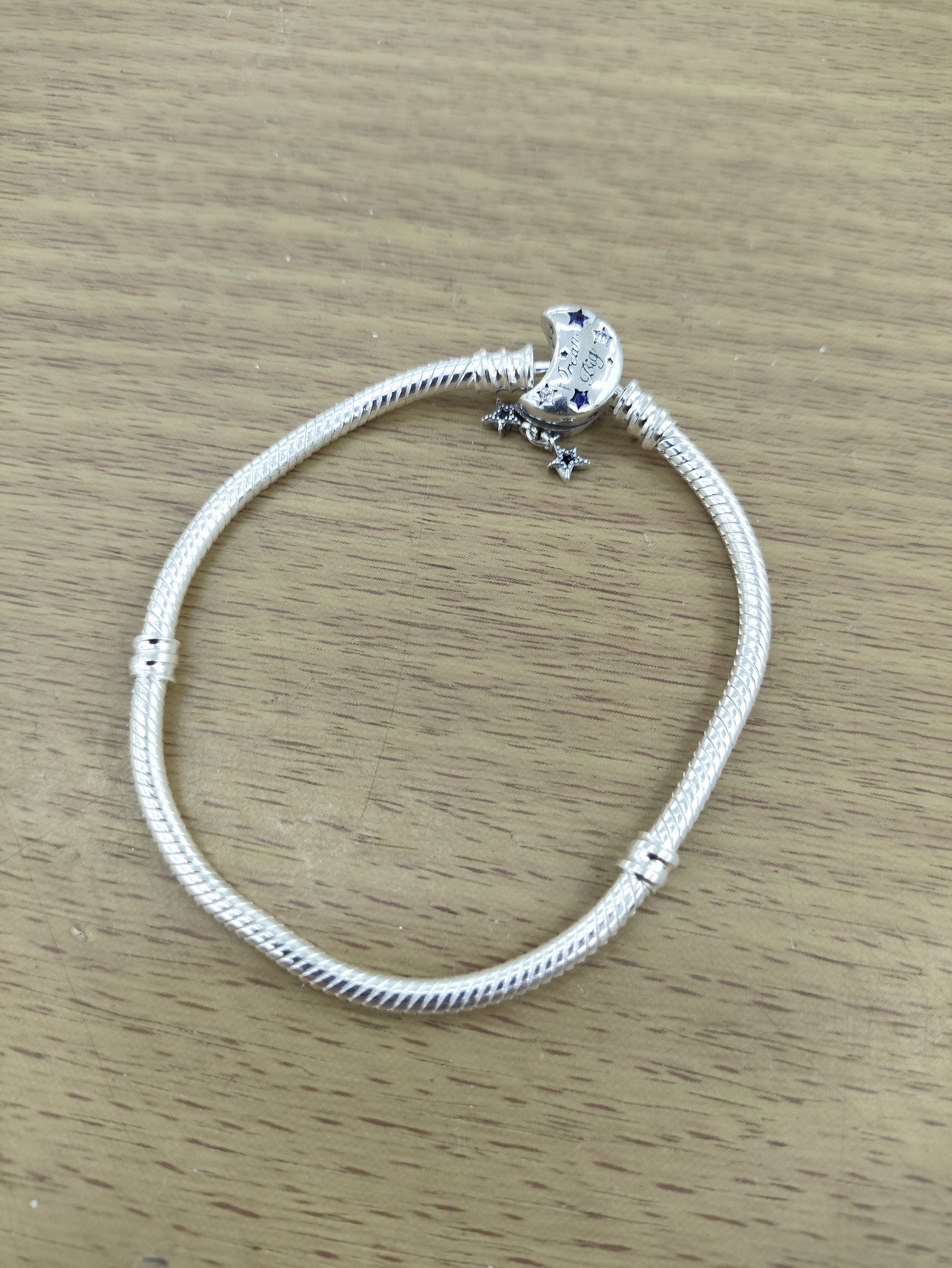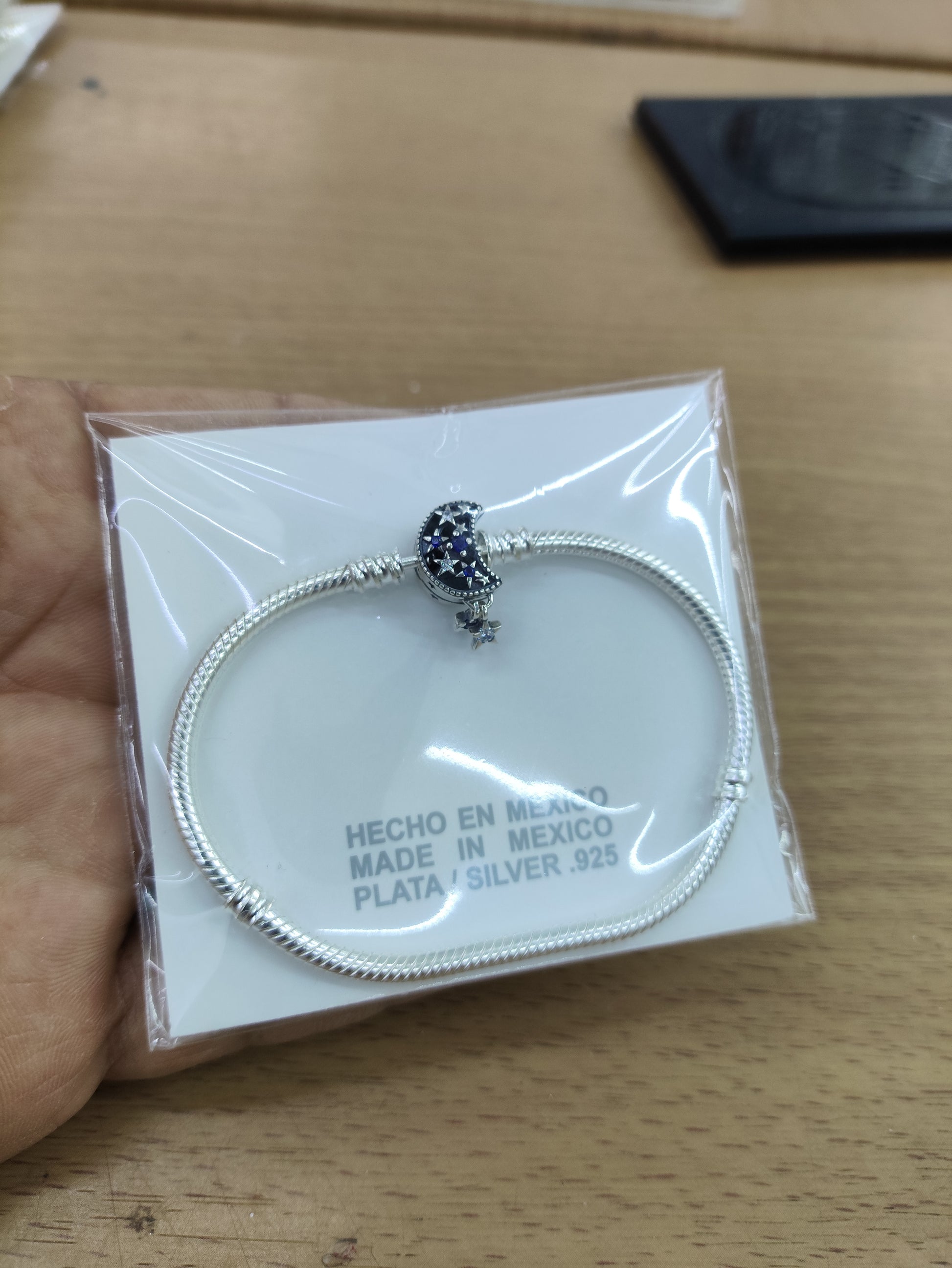 TMPPD022-19 Pulsera Dama Pand Luna con Estrellas Colgantes 19 cm en Plata Fina .925