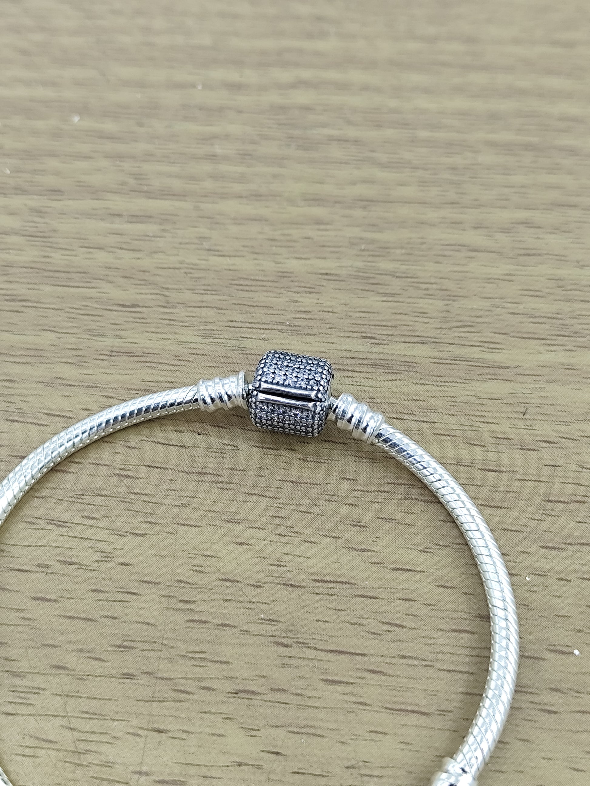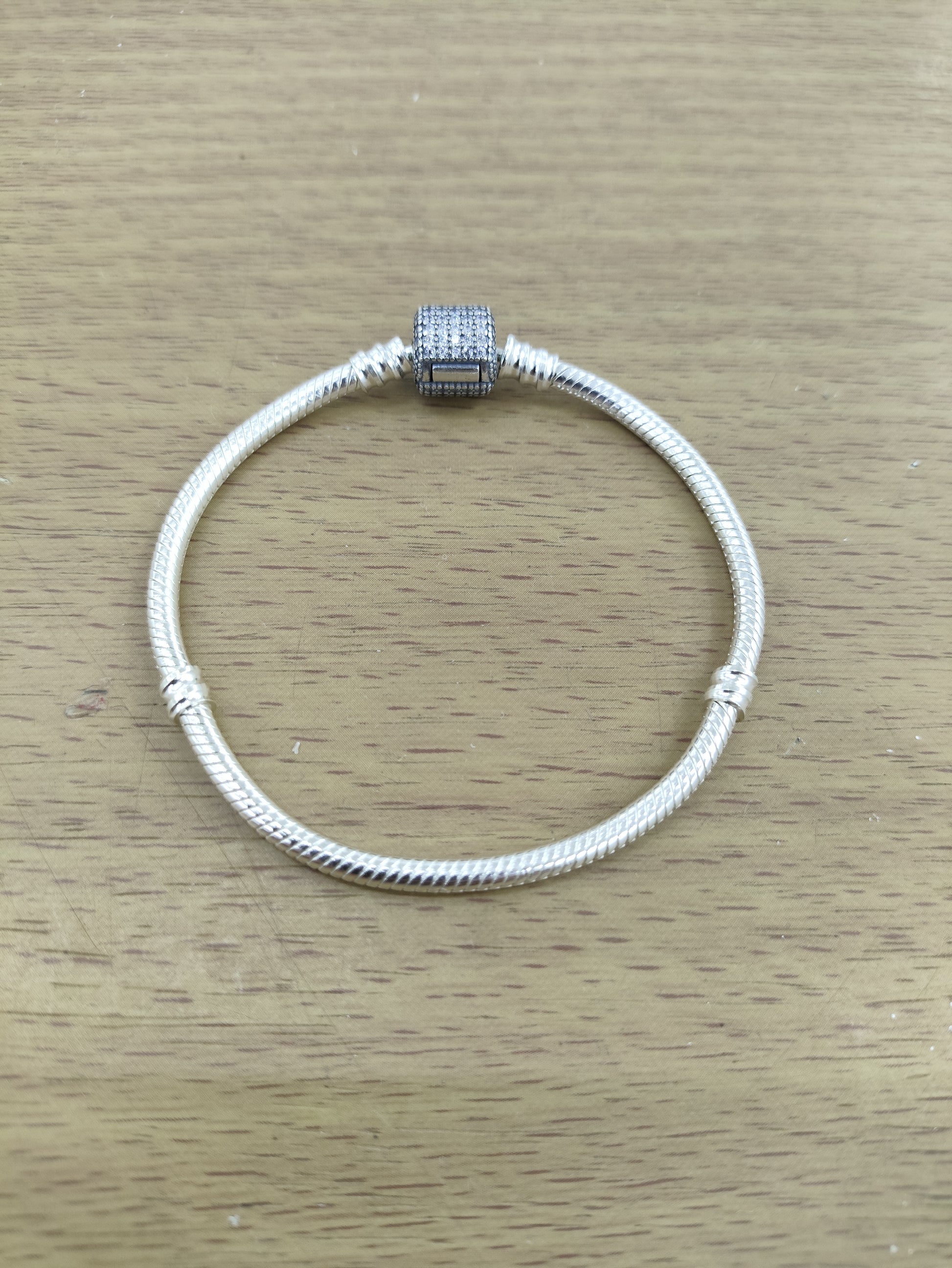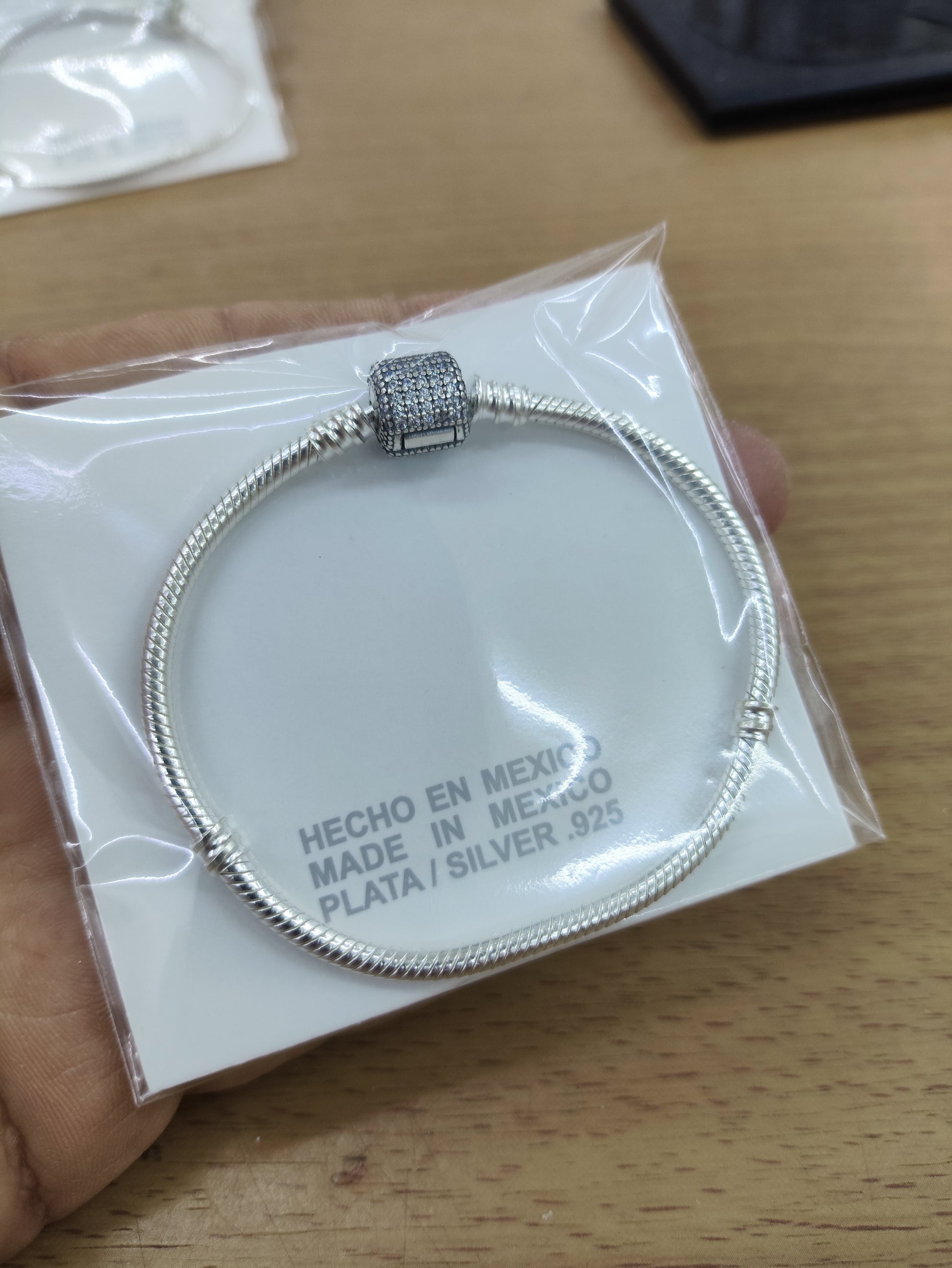 TMPPD026-18 Pulsera Dama Pand Cilindro Zirconias Pavé 18 cm en Plata Fina .925