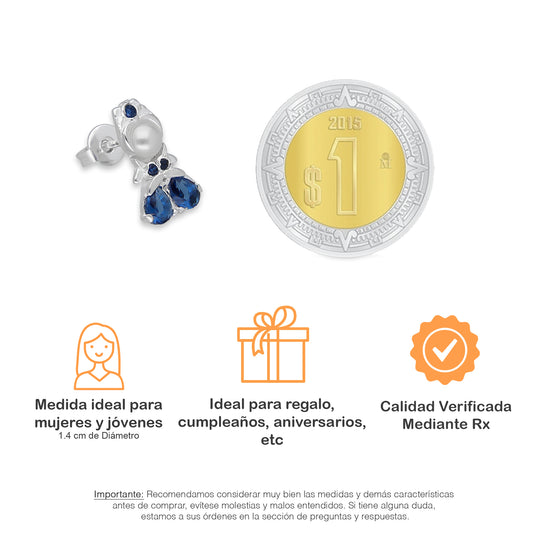 LPAP144 Arete Broquel Princess Mod 1 Cen Azul en Plata .925 Taxco 4685831488