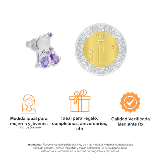 LPAP145 Arete Broquel Princess Mod 2 Rap Lila en Plata .925 Taxco 4685857440