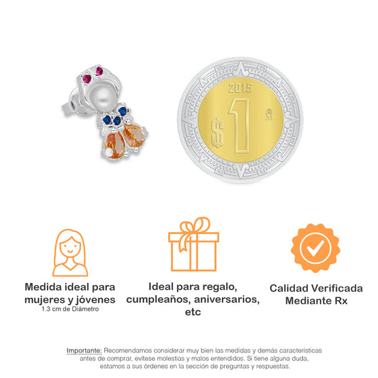 LPAP147 Arete Broquel Princess Mod 4 Blan Multi Plata .925 Taxco 4685780020