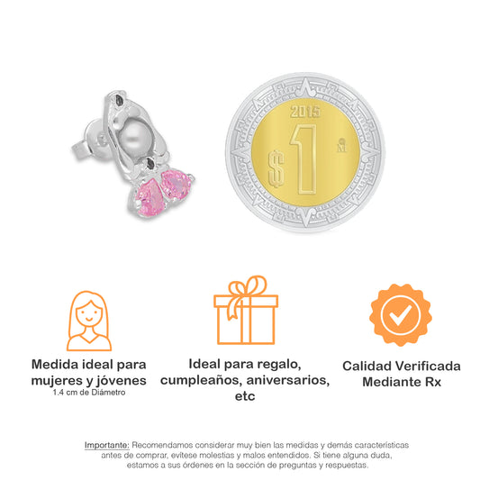 LPAP148 Arete Broquel Princess Mod 5 Au Rosa en Plata .925 Taxco 4685663486