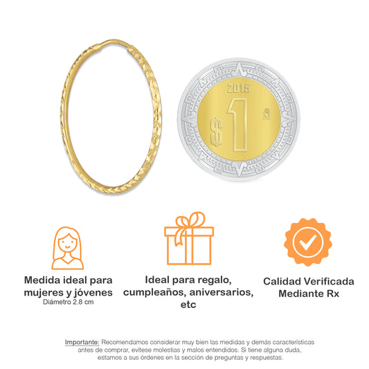 LPEAR022 Arete Arracada de Tubo Diamantada en Oro Sólido 14K 2.8 cm de Diámetro