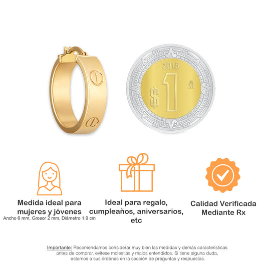 LPEAR024 Arete Arracada Lisa Cart Tornillo en Oro Sólido 10K Ancho 6 mm, Grosor 2 mm, Diámetro 2.5 cm