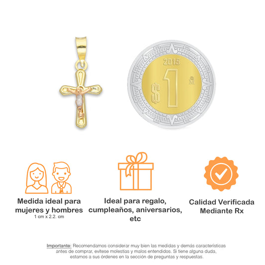 LPEDJ019 Dije Troquelado Oro Sólido 14K Florentino Mini Crucifijo Espiritu Santo 1 cm x 2.2 cm